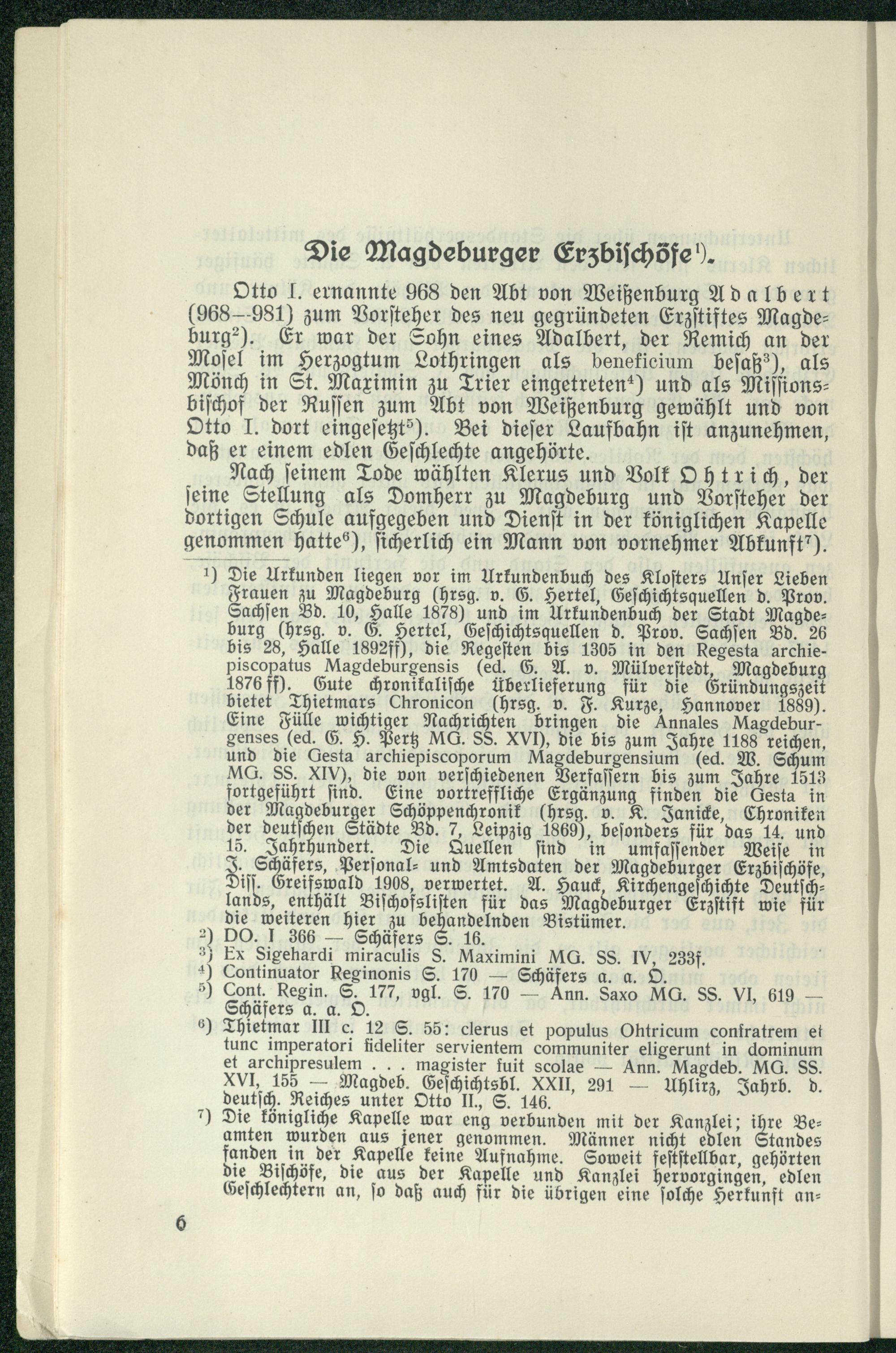 1) Die Urkunden liegen vor im Urkundenbuch des Kloſters Unſer Lieben Frauen zu Magdeburg(hrsg. v. G. Hertel , Geſchichtsquellen d. Prov. Sachſen Bd. 10, Halle 1878) und im Urkundenbuch der Stadt Magde burg (hrsg. v. G. Hertel , Geſchichtsquellen d. Prov. Sachſen Bd. 25 bis 28, Halle 1892ff), die Regeſten bis 1305 in den Regesta archiepiscopatus Magdeburgensis(ed. G. 2. v. Mülverſtedt , Magdeburg