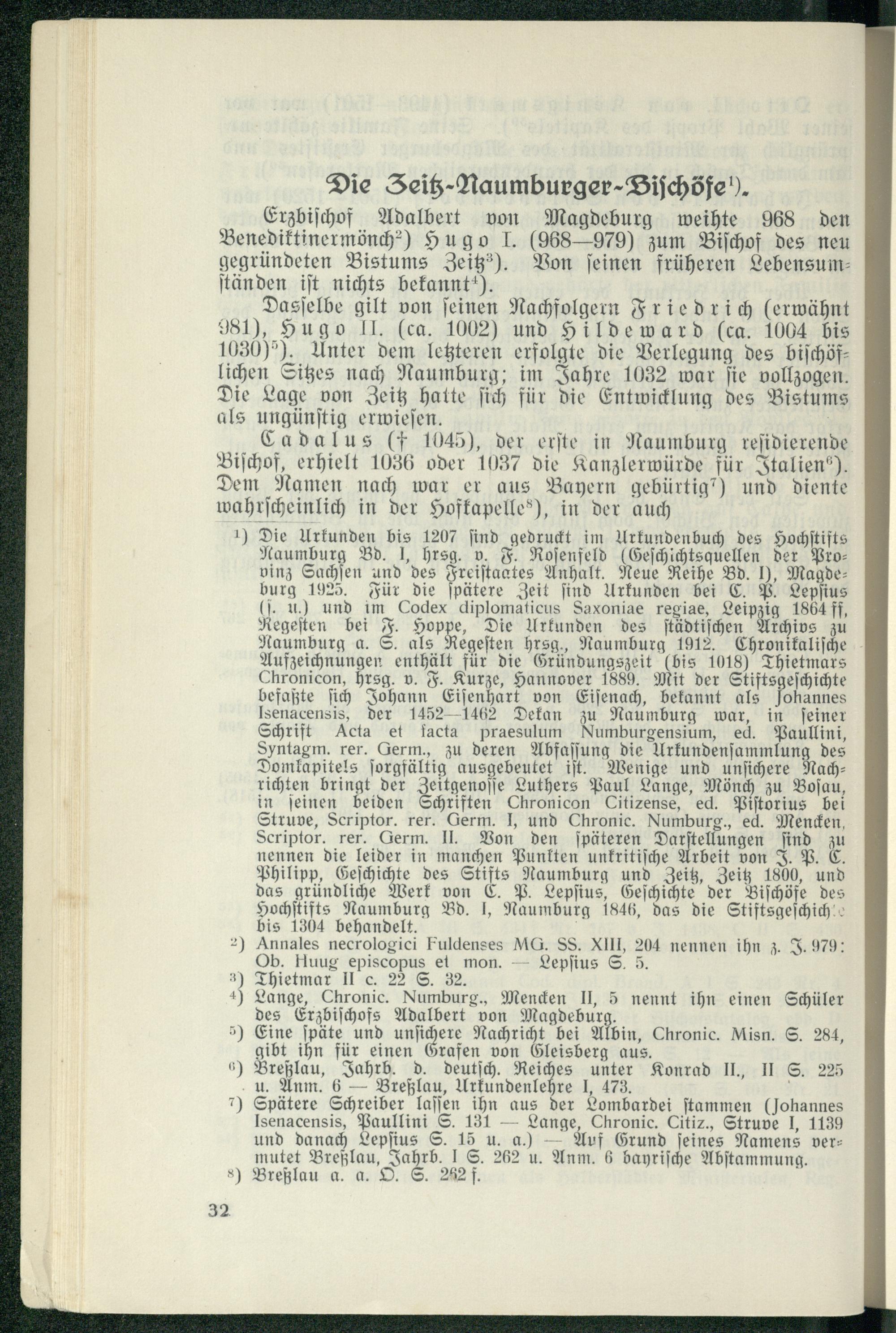 Cadalus(F 1045), der erſte in Naumburg reſidierende Biſchof, erhielt 1036 oder 10937 die Kanzlerwürde für Italien “). Dem Namen nach war er aus Bayern gebürtig!) und diente wahrſcheinlich in der Hofkapelle), in der auch