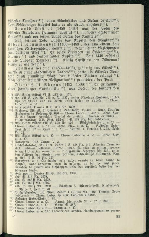 ) UB. Stadt Lübeck VI S. 213 Nr. 170. ebd. VII S. 708 Nr. 725 v. J. 1437: meſter Nicolaus Sachowe, to der tijd ſcolaſticus und nu deken unſer kerken to Lubeke Chron. Lubec. a.. O. Acta pontif. Danica II S. 331 Nr. 1392. Brehmer, Mitteil. d. Vereins f. Lüb. Geſch. V, 406— Knod, Deutſche Studenten in Bologna S. 626— Chron. Lubec. S. 402 u. Chron. Slav. S. 201 jagen: Arnoldus Westfal de civitate Lubicensi oriundus— Biſchofskatalog, UB . Bist. Lübeck I S. 138 Nr, 146: lublcensis. AUB. Stadt Lübeck VIII S. 522 Nr. 476 Biſchofskatalog a. a. O.— Shron. Lubec. a. a. O.— Chron. Slav. a. a. D.— Roſtocker Univ. wi, J, 5E,— Knod a. a. O.— Mitteil. d. Vereins f. Lüb. Geld, .