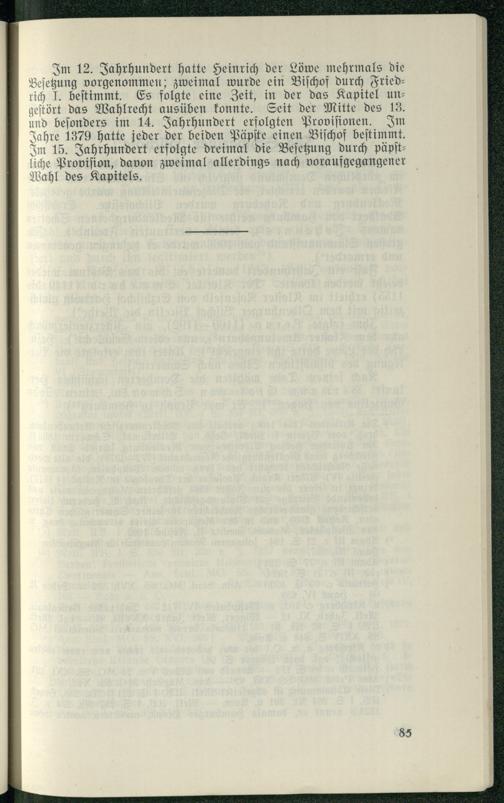 Im 12. Jahrhundert hatte Heinrich der Löwe mehrmals die Beſetzung vorgenommen; zweimal wurde ein Biſchof durch Friedrich J. beſtimmt. Es folgte eine Zeit, in der das Kapitel ungeſtört das Wahlrecht ausüben konnte. Seit der Mitte des 13. und beſonders im 14. Jahrhundert erfolgten Proviſionen. Im Jahre 1379 hatte jeder der beiden Päpſte einen Biſchof beſtimmt. Im 15. Jahrhundert erfolgte dreimal die Beſetzung durch päpſtliche Proviſion, davon zweimal allerdings nach voraufgegangener Wahl des Kapitels..