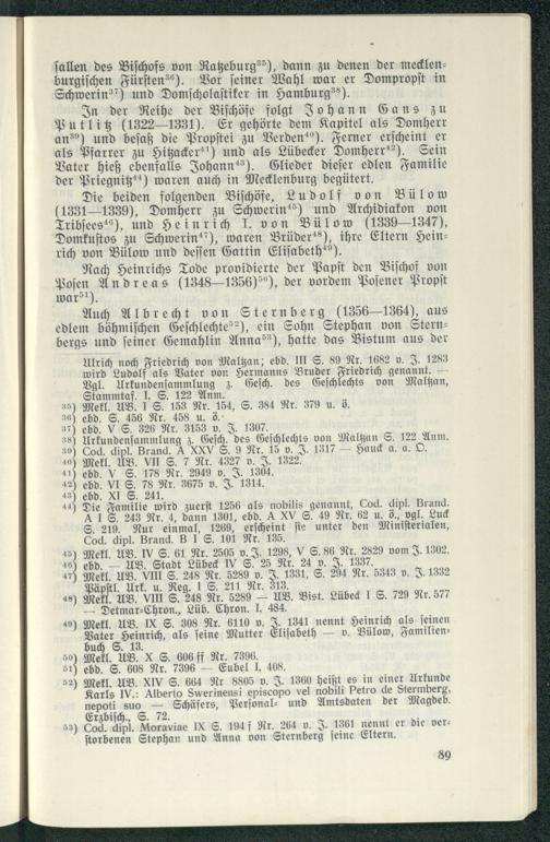 52) Mekl. UB. XIV S. 664 Nr 8805 v. J. 1360 heißt es in einer Urkunde Karls IV.: Alberto Swerinensi episcopo vel nobili Petro de Stermberg, nepofi suo— Schäfers, Perſonal⸗ und Amtsdaten der Magdeb. Erzbiſch., S. 72. 4.;