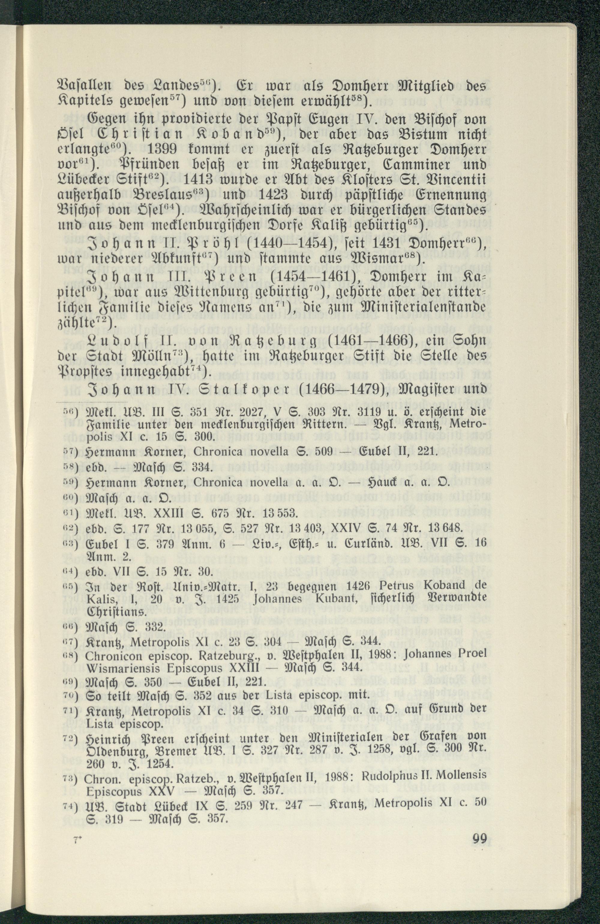71) Krantz, Metropolis XI c. 34 S. 310— Maſch a. a. O. auf Grund der Lista episcop. Hö