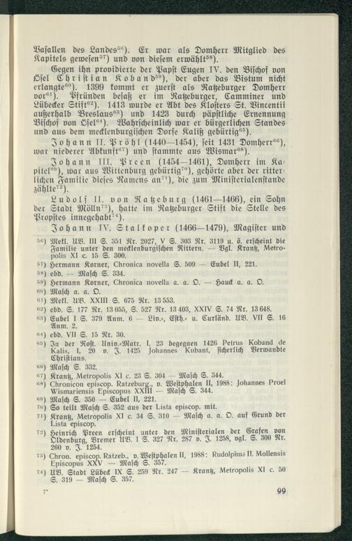 Johann II. Pröhl(1440- 1454), ſeit 1431 Domherr ée), war niederer Abkunfté?) und ſtammte aus Wismar ?s).