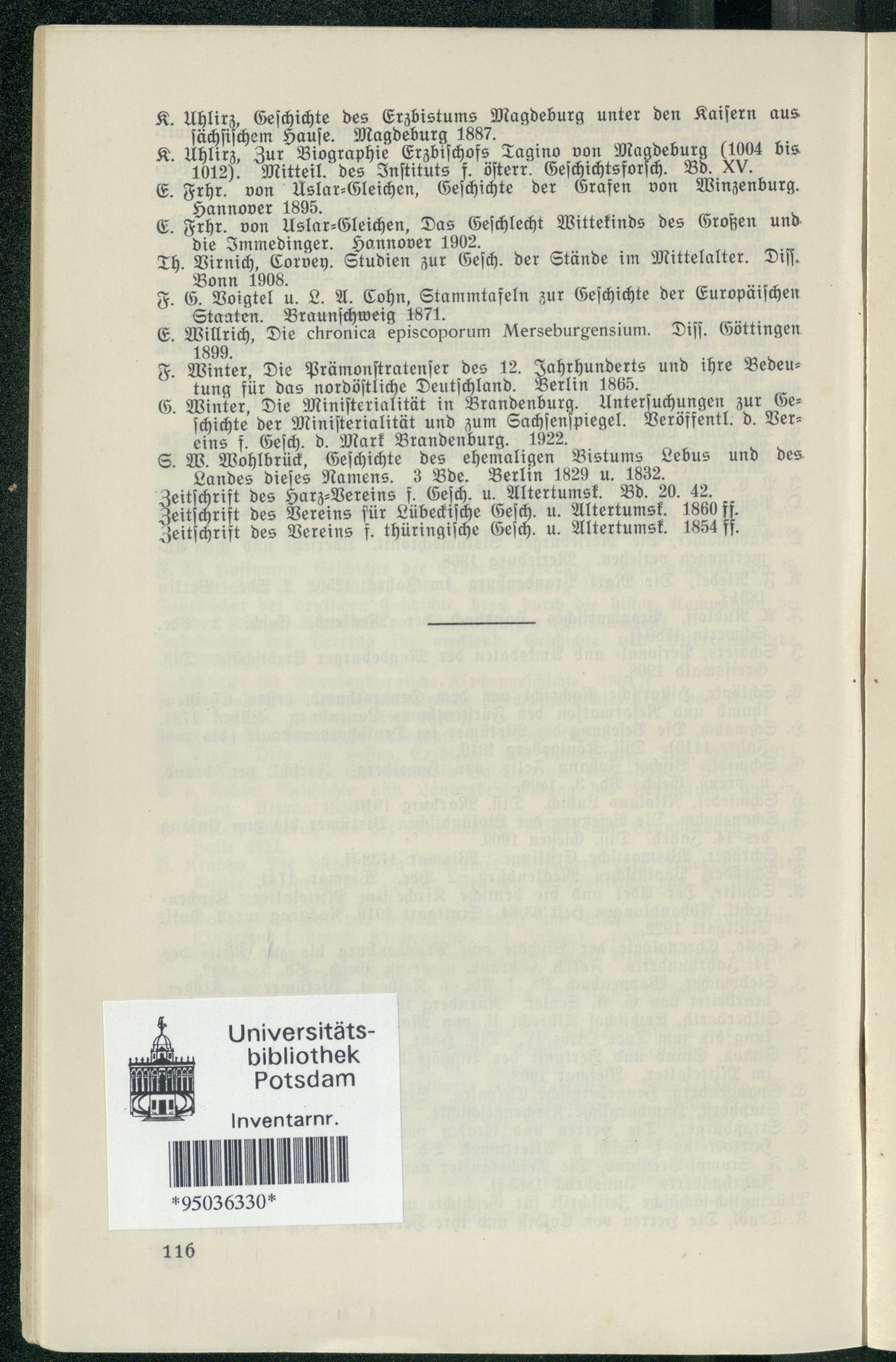 Staaten. Braunſchweig 1871. Willrich, Die chronica episcoporum Merseburgensium. Diſſ. Göttingen
