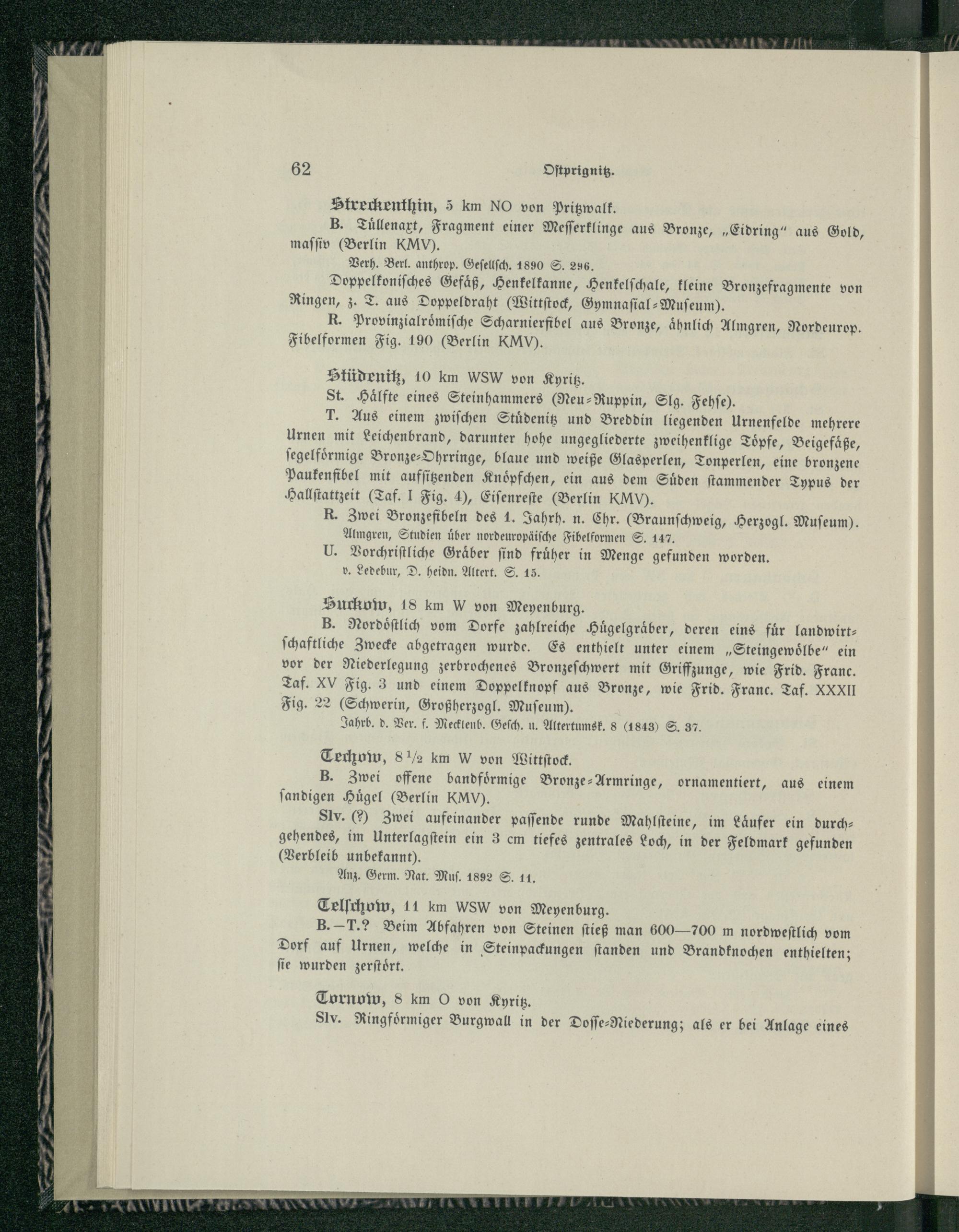 Tornow, 8 km O von Kyritz. Sly. Ringfoͤrmiger Burgwall in der Doſſe⸗-Niederung; als er bei Anlage eines