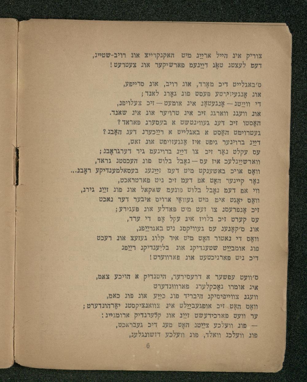 װי אפ דעמ נאָבל בלוט פונעמ שאקאל אונ פוג זײַג גירג, װאָס יאָגט אימ מיט געוואָי ארויס איבער דער נאכט