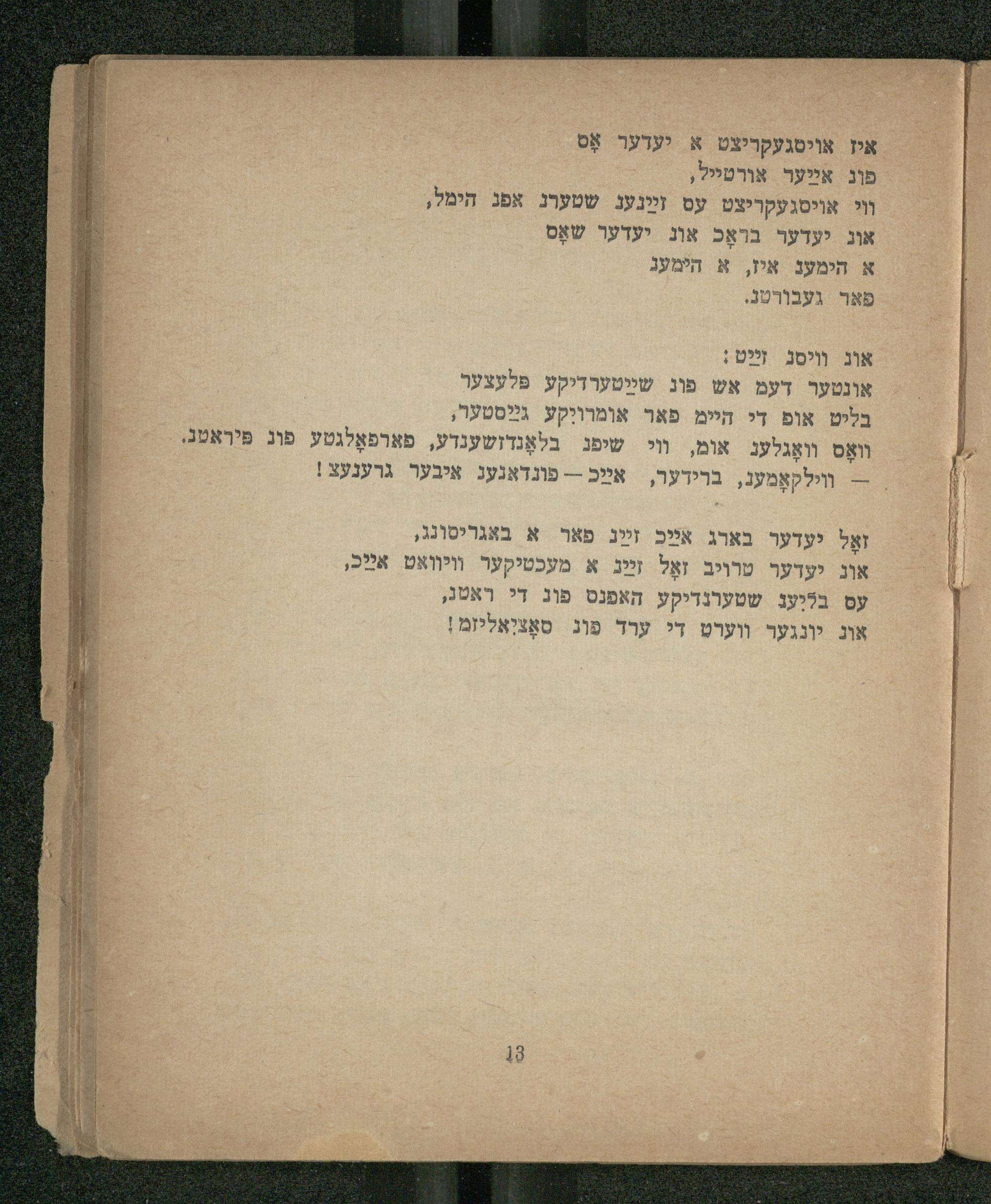 אוג יעדער טרויב זאָל זײַג א מעכטיקער ויוואט אײַל, עס בליעג שטערנדיקע האפנט פוג די ראטג,