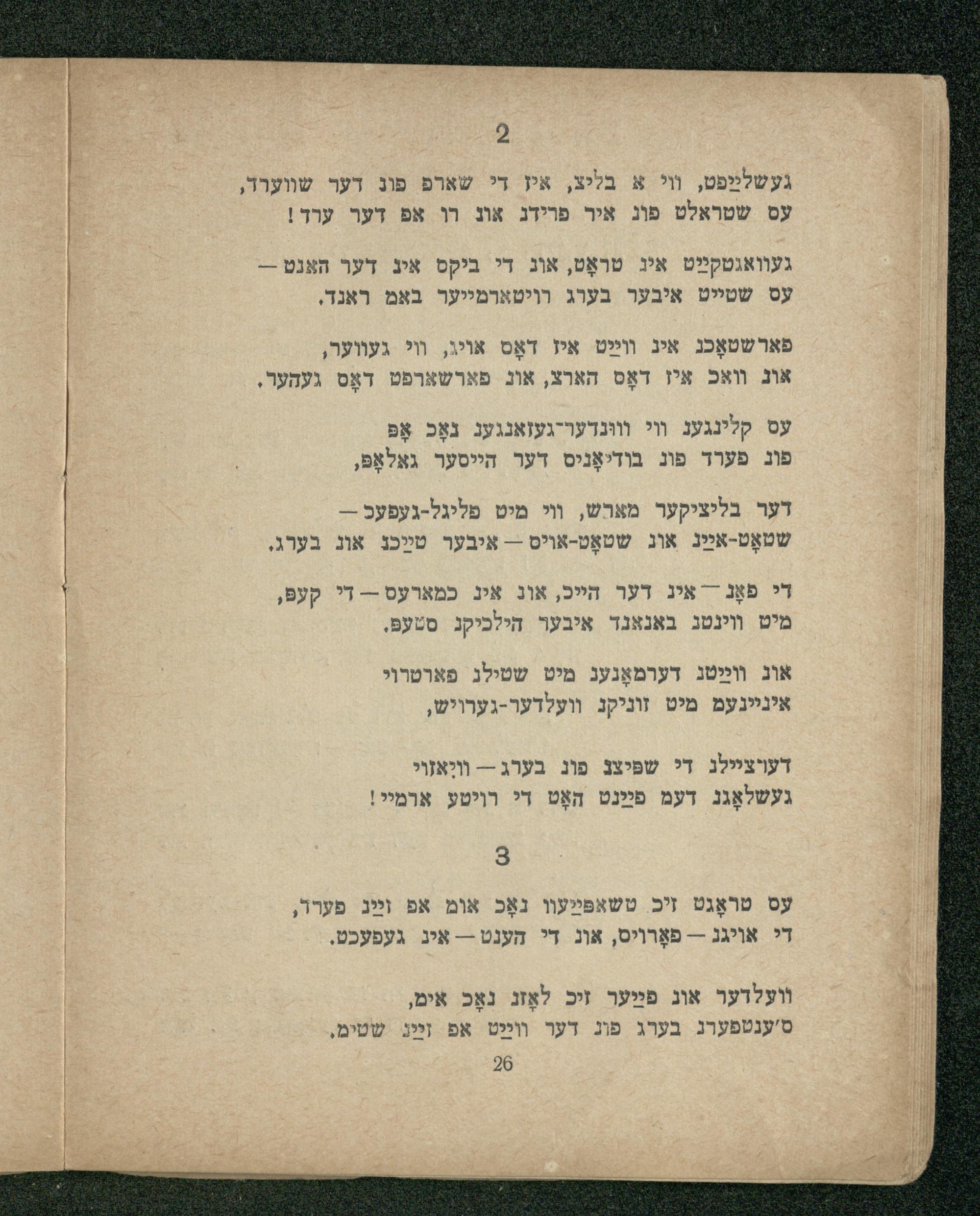 וועלדער אוג פּײַער זיכ לאָזג נאָכ אימ, ס'ענטפערג בערג פוג דער װײַט אפ זײַג שטימ, 6