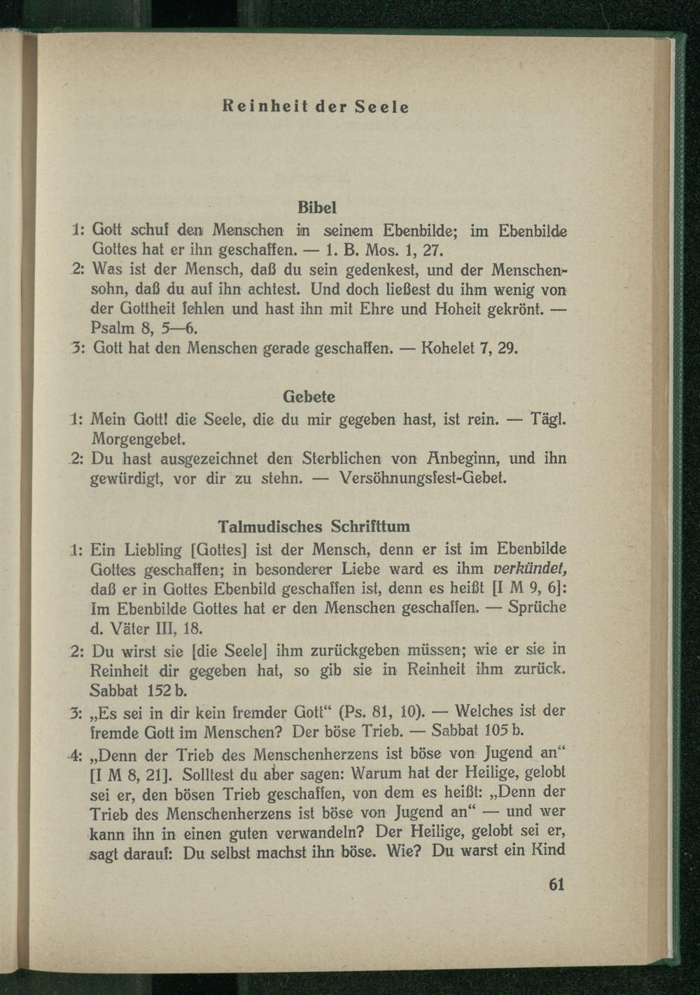 1: Ein Liebling [Gottes] ist der Mensch, denn er ist im Ebenbilde Gottes geschaffen; in besonderer Liebe ward es ihm verkündet, daß er in Gottes Ebenbild geschaffen ist, denn es heißt [I M 9, 6]: Im Ebenbilde Gottes hat er den Menschen geschaffen. — Sprüche d. Väter III, 18.