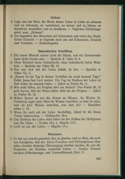 8: Das Studium der Lehre steht höher als der Aufbau des Heiligtums und die Opfer. — Erubin 63 a u. Megilla 16 b.