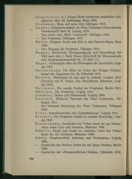 Kittel, Judenfeindsohaft oder Gotteslästerung? Leipzig 1914. Kleinert, Die Propheten Israels in sozialer Beziehung, Leipzig 1905.