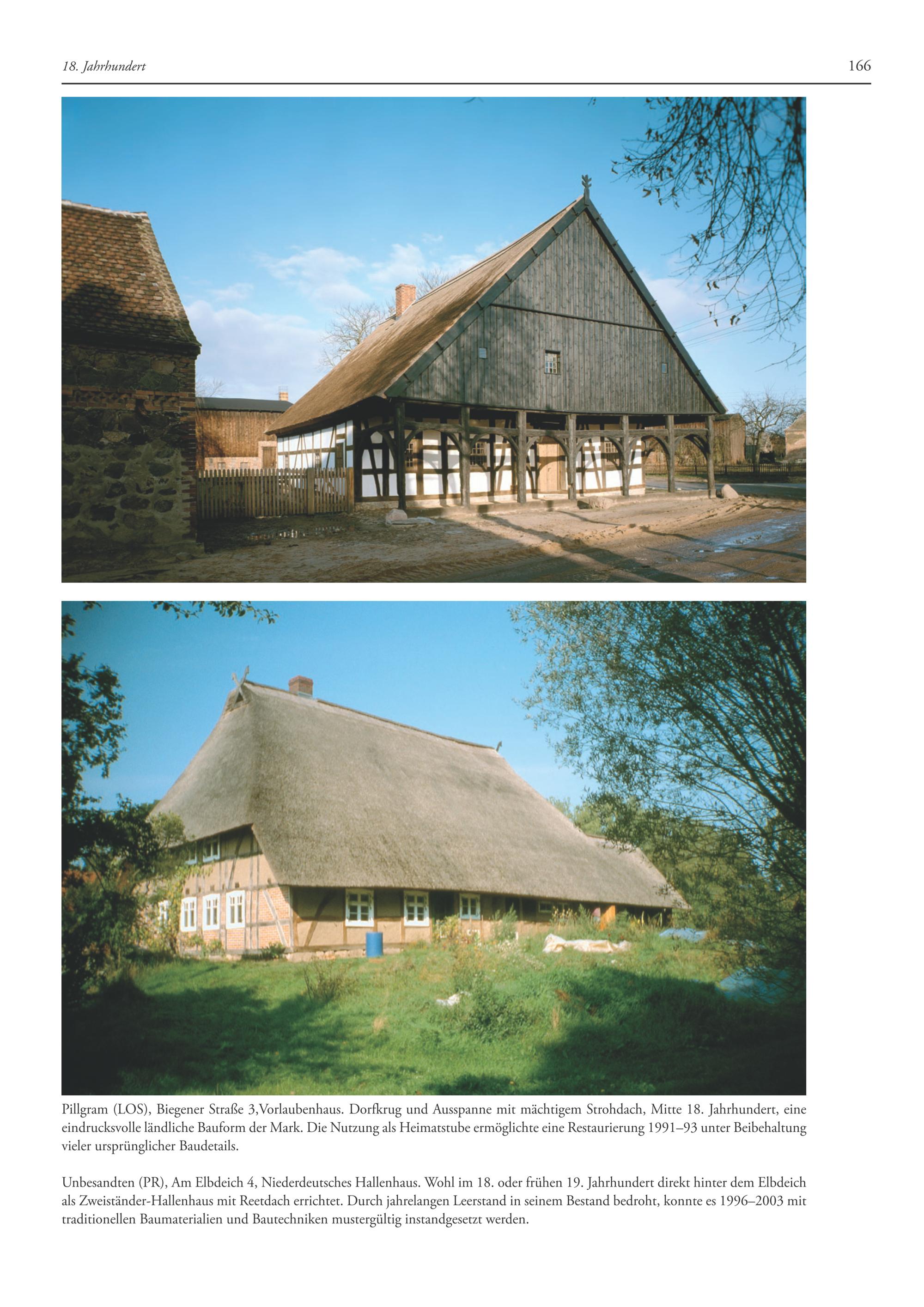 Pillgram(LOS), Biegener Straße 3,Vorlaubenhaus. Dorfkrug und Ausspanne mit mächtigem Strohdach, Mitte 18. Jahrhundert, eine