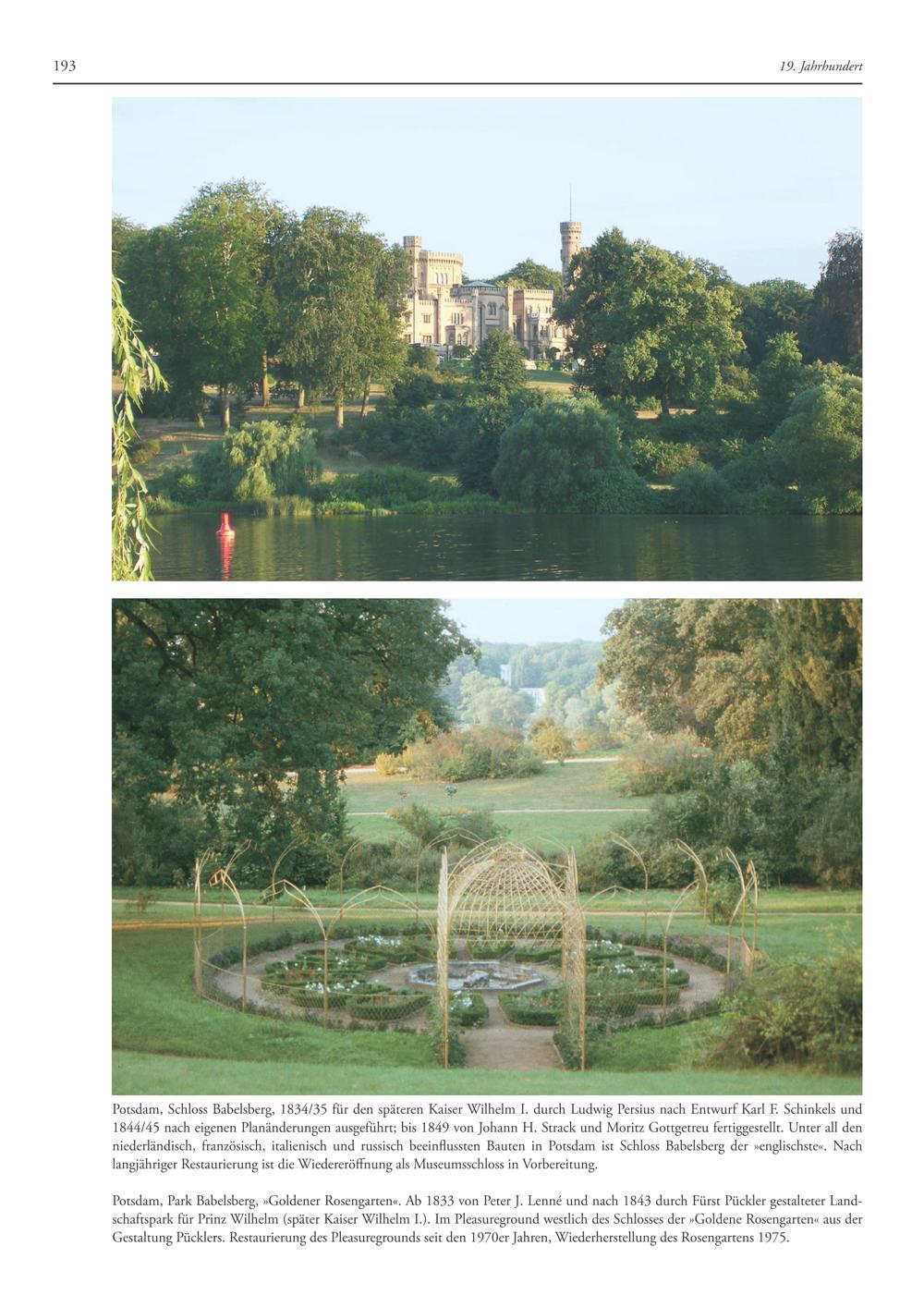 Potsdam, Park Babelsberg,»Goldener Rosengarten«. Ab 1833 von Peter J. Lenn€ und nach 1843 durch Fürst Pückler gestalteter Landschaftspark für Prinz Wilhelm(später Kaiser Wilhelm I.). Im Pleasureground westlich des Schlosses der»Goldene Rosengarten« aus der Gestaltung Pücklers. Restaurierung des Pleasuregrounds seit den 1970er Jahren, Wiederherstellung des Rosengartens 1975.