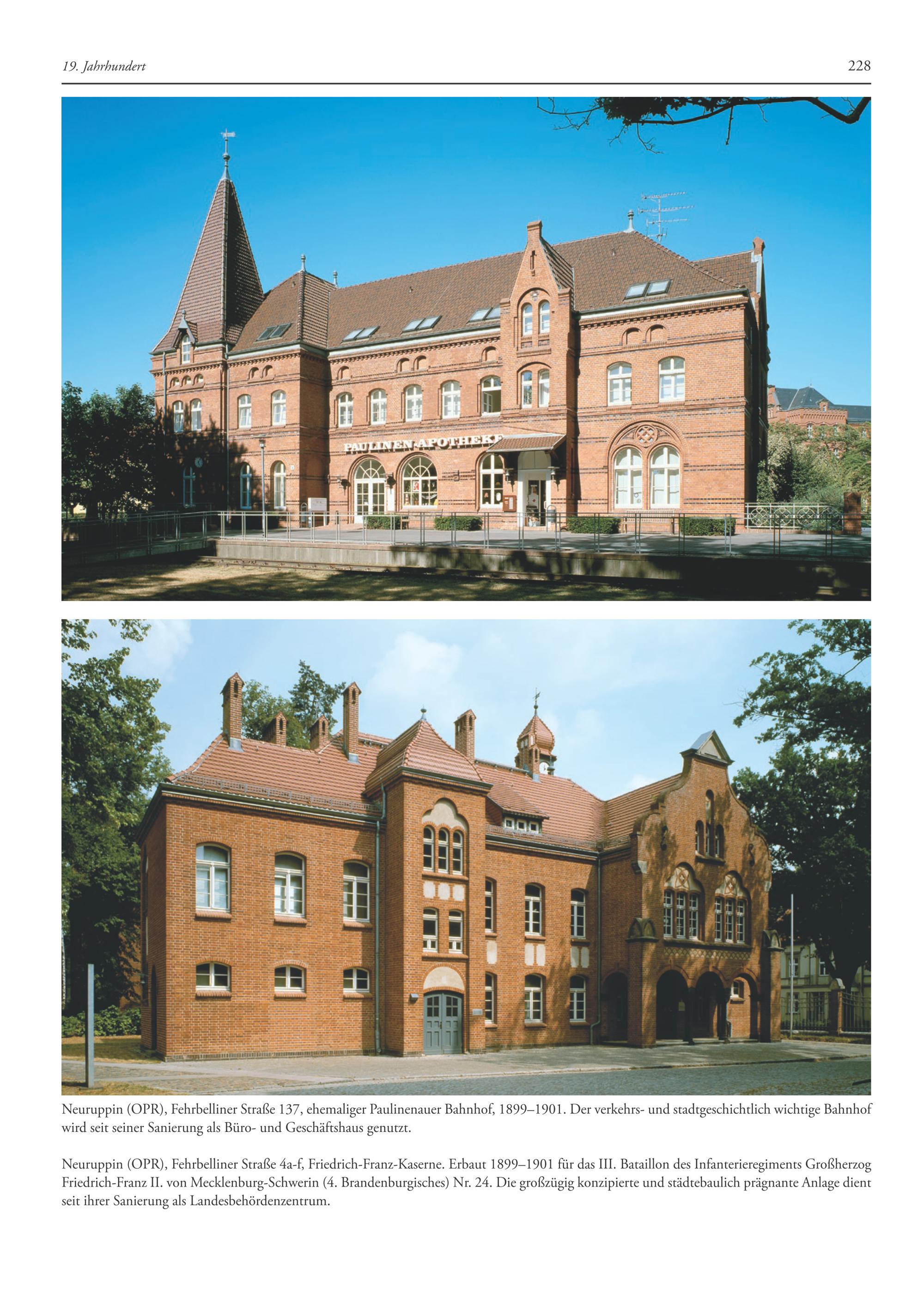 Neuruppin(OPR), Fehrbelliner Straße 4a-f, Friedrich-Franz-Kaserne. Erbaut 1899-1901 für das III. Bataillon des Infanterieregiments Großherzog Friedrich-Franz II. von Mecklenburg-Schwerin(4. Brandenburgisches) Nr. 24. Die großzügig konzipierte und städtebaulich prägnante Anlage dient seit ihrer Sanierung als Landesbehördenzentrum.