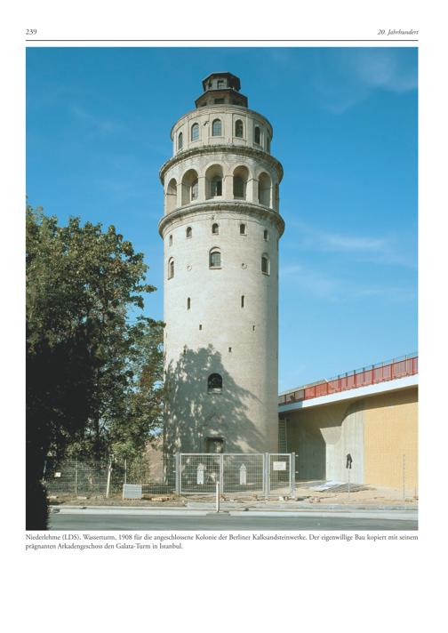 Niederlehme(LDS), Wasserturm, 1908 für die angeschlossene Kolonie der Berliner Kalksandsteinwerke. Der eigenwillige Bau kopiert mit seinem prägnanten Arkadengeschoss den Galata-Turm in Istanbul.