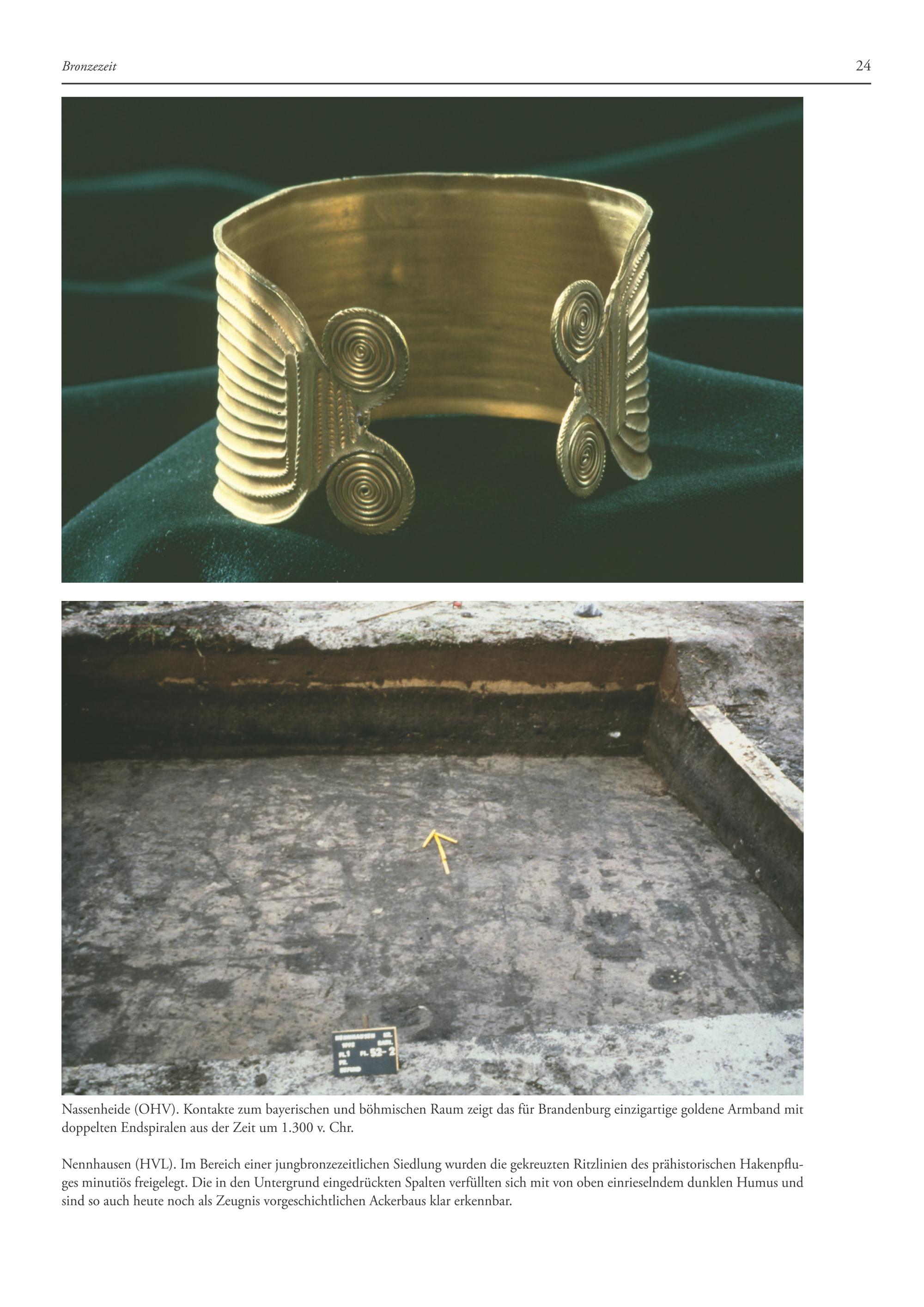 Nassenheide(OHV). Kontakte zum bayerischen und böhmischen Raum zeigt das für Brandenburg einzigartige goldene Armband mit doppelten Endspiralen aus der Zeit um 1.300 v. Chr.