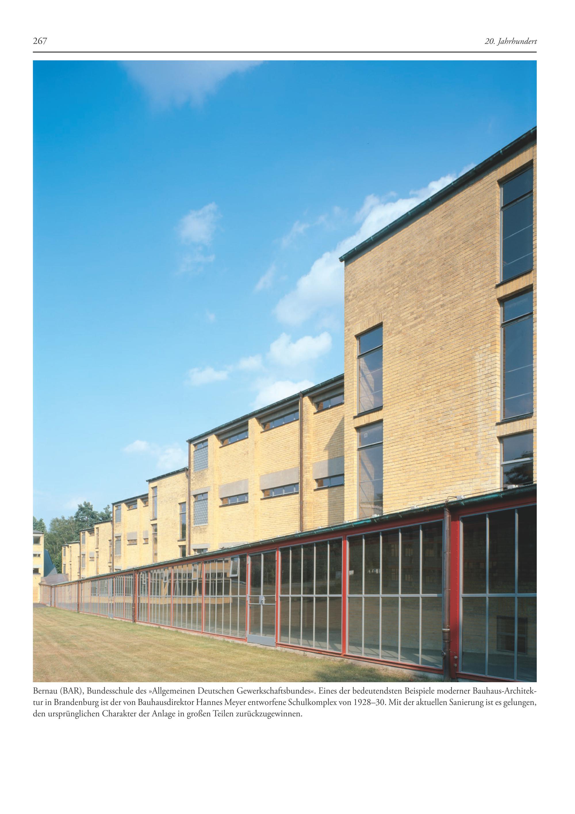 Bernau(BAR), Bundesschule des»Allgemeinen Deutschen Gewerkschaftsbundes«. Eines der bedeutendsten Beispiele moderner Bauhaus-Architektur in Brandenburg ist der von Bauhausdirektor Hannes Meyer entworfene Schulkomplex von 1928-30. Mit der aktuellen Sanierung ist es gelungen,