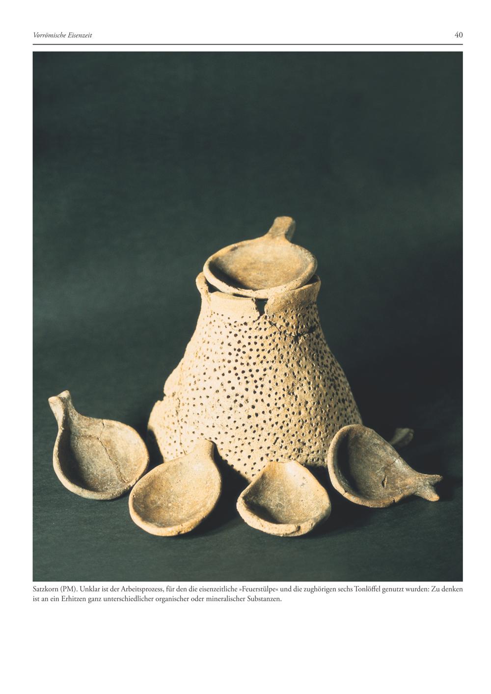 Satzkorn(PM). Unklar ist der Arbeitsprozess, für den die eisenzeitliche»Feuerstülpe« und die zughörigen sechs Tonlöffel genutzt wurden: Zu denken