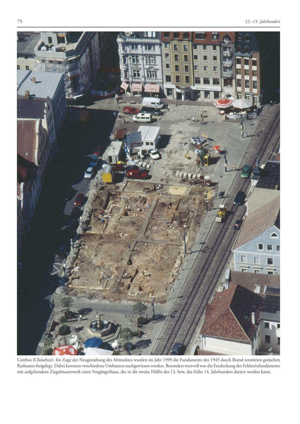 Cottbus(Chösebuz). Im Zuge der Neugestaltung des Altmarktes wurden im Jahr 1999 die Fundamente des 1945 durch Brand zerstörten gotischen Rathauses freigelegt. Dabei konnten verschiedene Umbauten nachgewiesen werden. Besonders wertvoll war die Entdeckung des Feldsteinfundaments mit aufgehendem Ziegelmauerwerk eines Vorgängerbaus, der in die zweite Hälfte des 13. bzw. das frühe 14. Jahrhundert datiert werden kann.