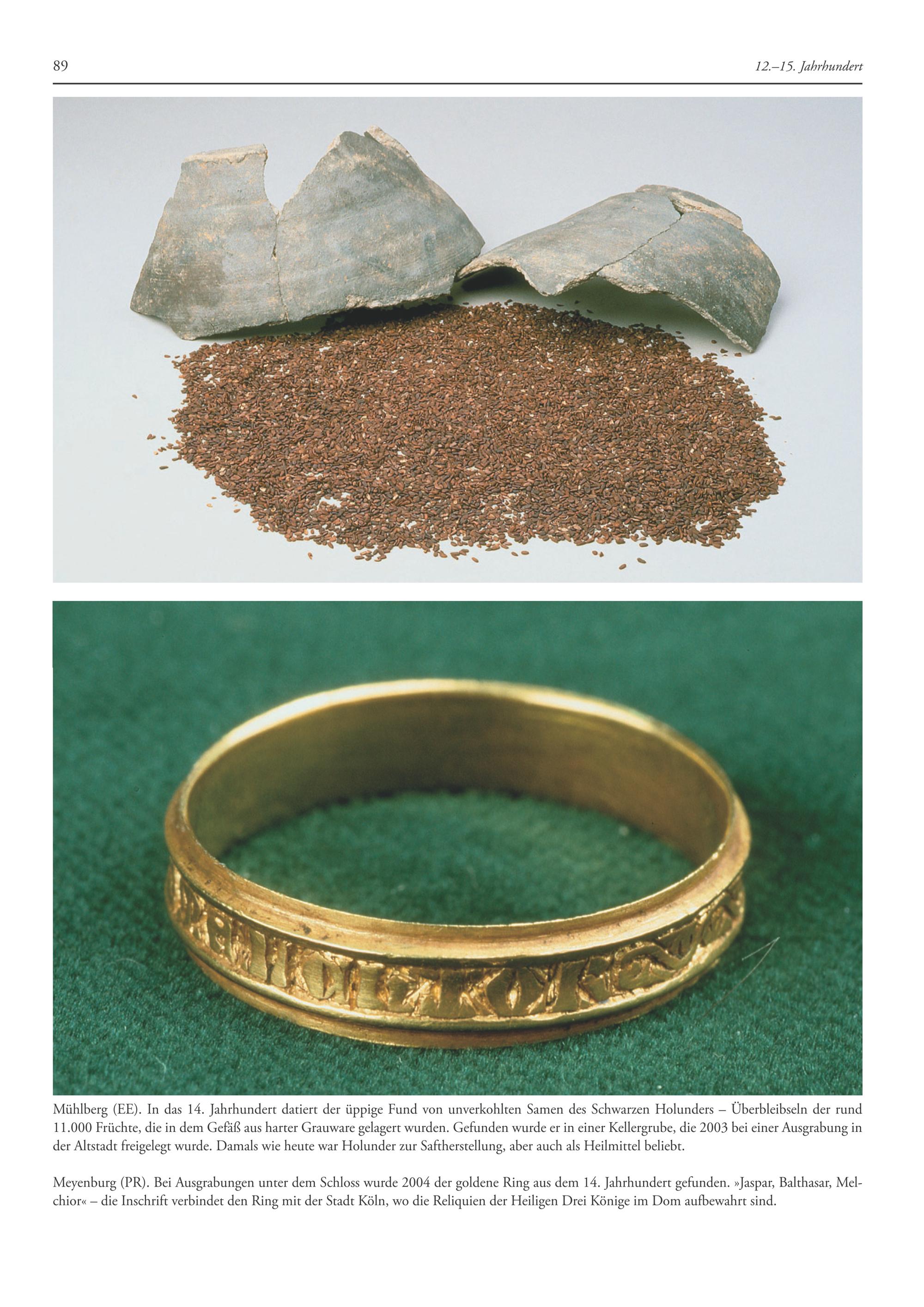 Mühlberg(EE). In das 14. Jahrhundert datiert der üppige Fund von unverkohlten Samen des Schwarzen Holunders— Überbleibseln der rund 11.000 Früchte, die in dem Gefäß aus harter Grauware gelagert wurden. Gefunden wurde er in einer Kellergrube, die 2003 bei einer Ausgrabung in der Altstadt freigelegt wurde. Damals wie heute war Holunder zur Saftherstellung, aber auch als Heilmittel beliebt.