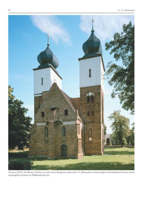 Tremmen(HVL), Dorfkirche. Errichtet im Laufe zweier Bauphasen während des 15. Jahrhunderts. Zweitürmigkeit und Außenkanzel weisen auf die ursprüngliche Funktion als Wallfahrtskirche hin.