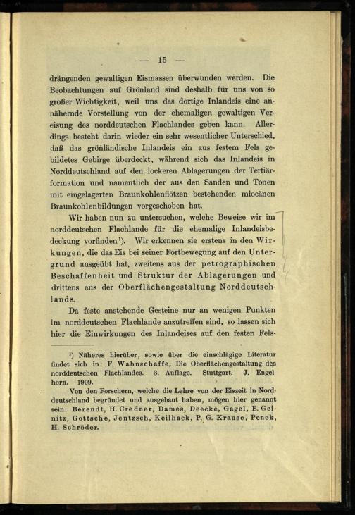 1) Näheres hierüber, sowie über die einschlägige Literatur findet sich in: F. Wahnschaffe , Die Oberflächengestaltung des norddeutschen Flachlandes. 3. Auflage. Stuttgart . J. Engelhorn. 1909.‘