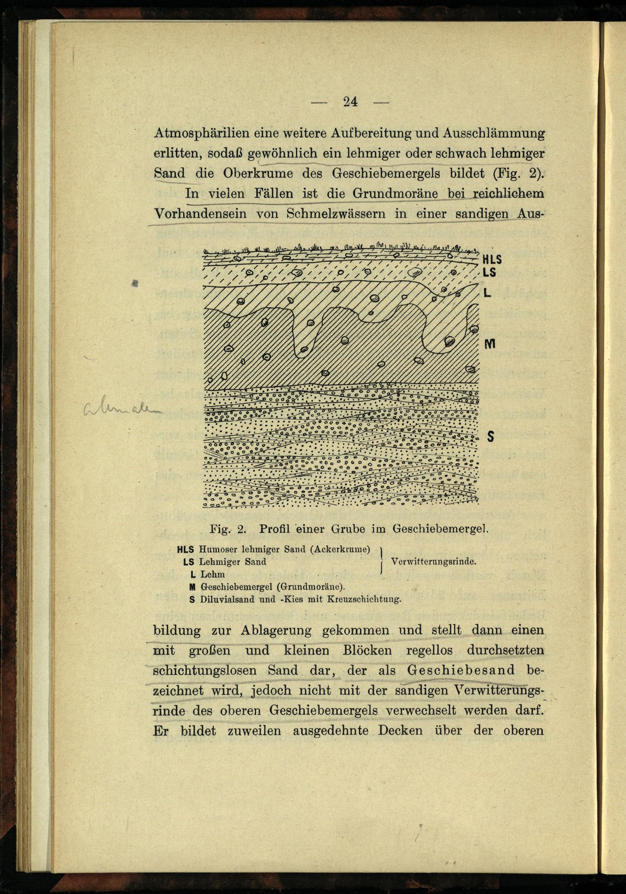 Atmosphärilien eine weitere Aufbereitung und Ausschlämmung erlitten, sodaß gewöhnlich ein lehmiger oder schwach lehmiger Sand die Oberkrume des Geschiebemergels bildet(Fig. 2).
