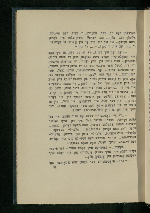 פארבעטן דעם רב, משה שמערלס, ר' צדוק דעם אייניק?, אלימלך דעם מלוה... כע, ישראל דרדקיימלמד איז דאָרטן נישט געווען... און איך רוף מיך אָן אין אַ וויץ צו קאָצינען; ר! נתן, זאָג איך, ר' גתן!..=... ר' נתן
