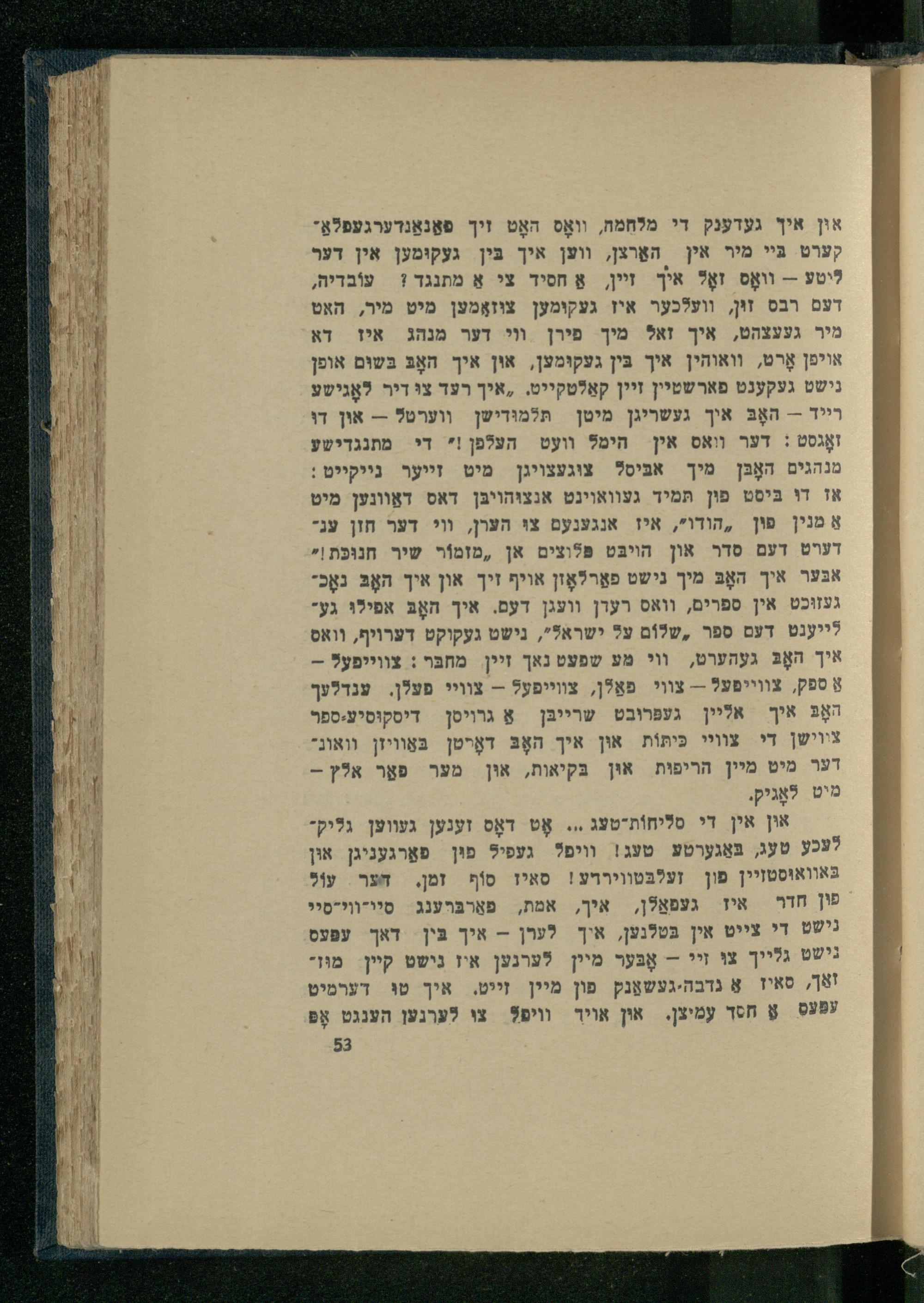 און אין די סליחוֹתיטעג... אָט דאָס זענען געווען גליקלעכץ טעג, בּאַגערטע טעג! וויפ? געפיל פון פאַרגעניגן אין בּאוואוּסטזיין פון זעלבּטווירױע! סאיז סוֹף זמן, הער עוֹל פון חדר איז געפאַלן, איך, אמת, פאַרבּרענג סיייווי"סיי נישט די צייט אין בּטלנען, איך לערן- איך בּין דאך עפּעס נישט גלייך צוּ זיי- אָבּער מיין לערנען איז נישט קיין מוּןזאך, סאיז אַ נדבה.געשאַנק פון מיין זייט. איך טוּ דערמיט עפעס אָ חסך עמיצן. אין אויך ווים?ל צו לערנען הענגט אָפּ