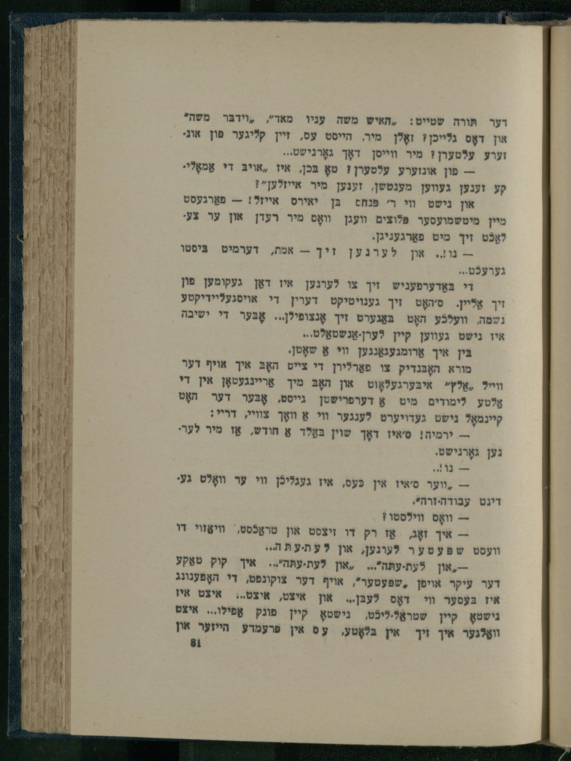 דער תּורה שטייט: ,האיש משה עניו מאד", ,ודבּר משה" און דאָס גלייכן? זאָלן מיר, הייסט עס, זיין קליגער פון אוני זערע עלטערן? מיר וייסן דאָך גאָרנישטי..