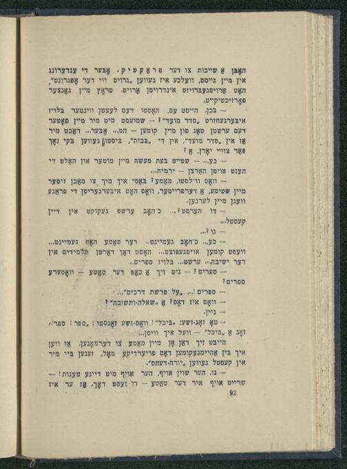 -- ספרים!-- גיט זיך אַ כאַפּ דער טאָטע-- װאָסערע ספרים?