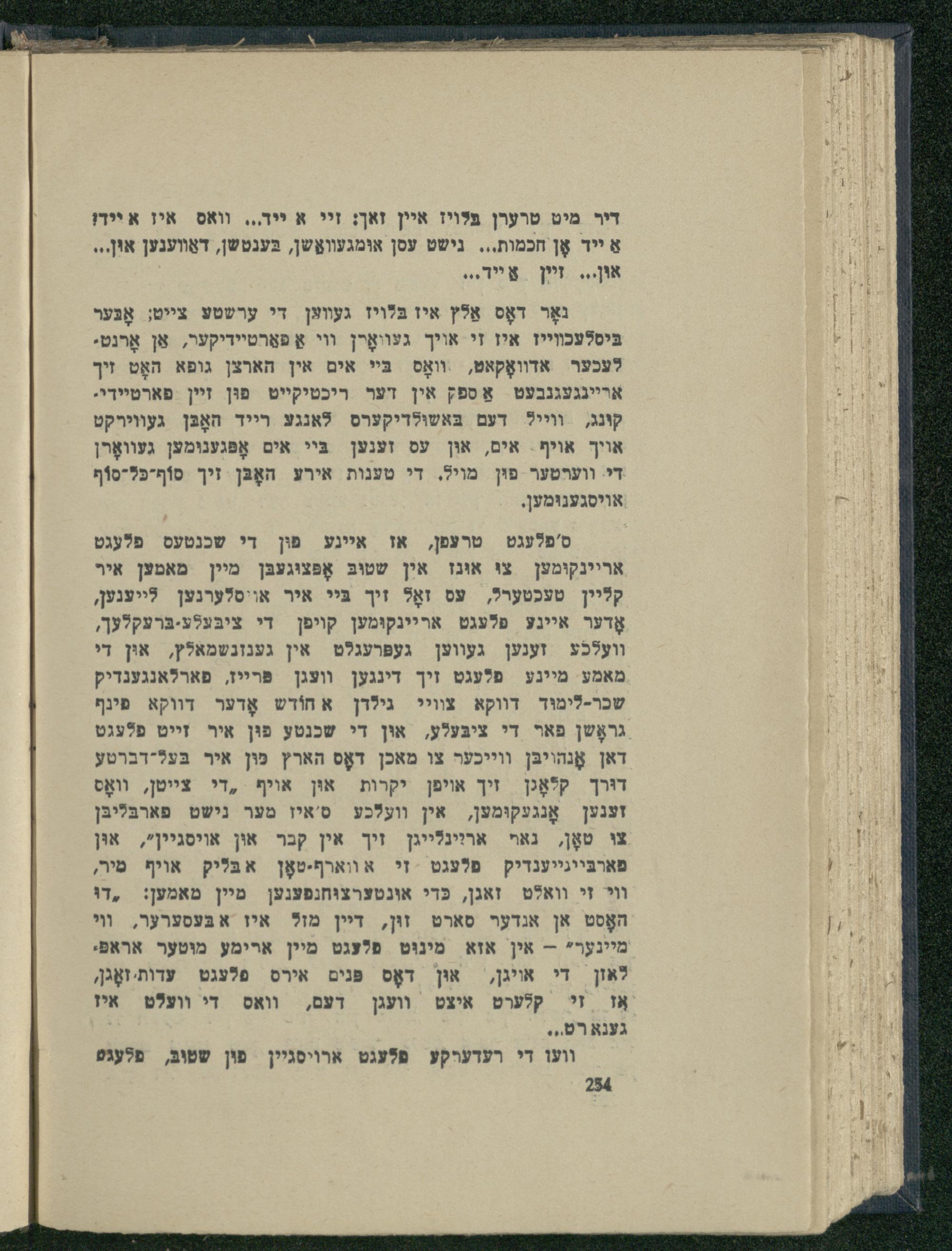 וועלכע זענען געווען געפּרעגלט אין גענזנשמאלץ, און די מאמע מיינע פלעגט זיך דינגען וועגן פֿרײז, פארלאנגענדיק שכר-לימוד דווקא צוויי גילדן א חוֹדש אָדער דווקא פינף גראָשן פאר די ציבּעלע, אוּן די שכנטע פון איר זייט פלעגט דאן אָנהויבּן ווייכער צו מאכן דאָס הארץ פּוּן איר בּעל-ידברטע דוּרך קלאָגן זיך אויפן יקרות און אויף ,די צייטן, וװאָס זענען אָנגעקוּמען, אין וועלכע ס'איז מער נישט פארבּליבּן צו טאָן, נאף אריינלייגן זיך אין קבר און אויסגיין", און פארבּייגייענדיק פלעגט זי אווארף-טאָן אבּליק אויף מיר, וי זי וואלט זאגן, כּדי אונטערצוּחנפענען מיין מאמען: ,דוּ האָסט אן אנדער סארט זין, דיין מזל איז א בּעסערער, ווי מיינער*- אין אזא מינוּט פלעגט מיין ארימע מיטער אראפּי לאון די איגן, אוּן דאָס פּנים אירס פלעגט עדותזאָגן, אֶו זי קלערט איצט וועגן דעם, וואס די וועלט איז גענארט..
