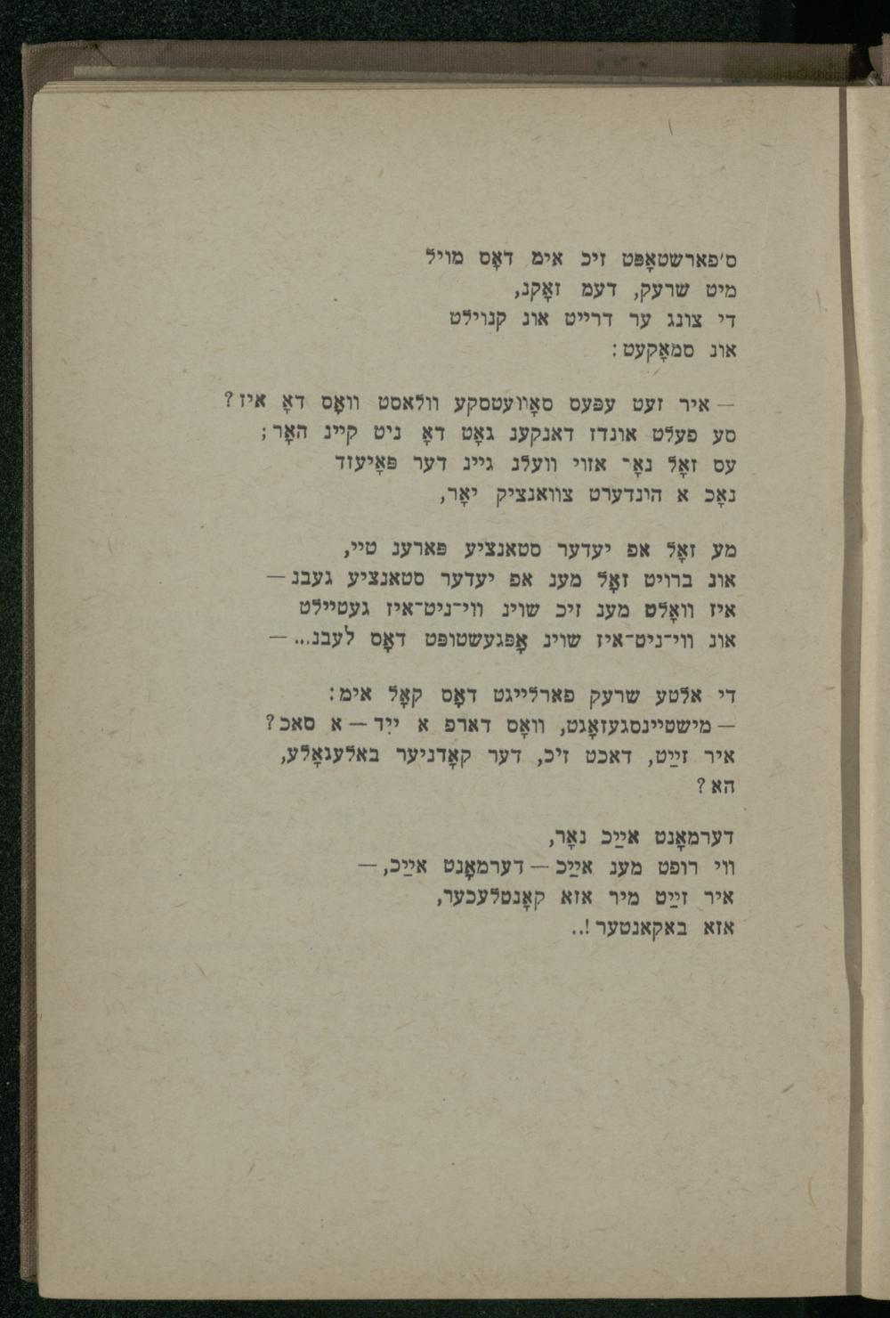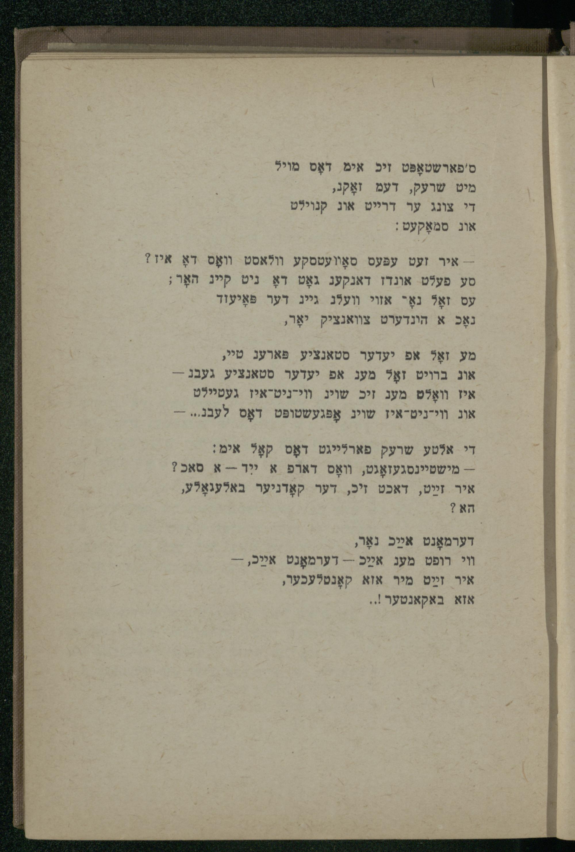 איר זעט עפּעס סאָװעטסקע וולאסט װאָס דאָ איו? סע פעלט אונדז דאנקעג גאָט דאָ ניט קייג האָר; עס זאָל נאָי אזוי װעלג גיינ דער פּאָיעזד נאָכ א הונדערט צוואנציק יאָר,