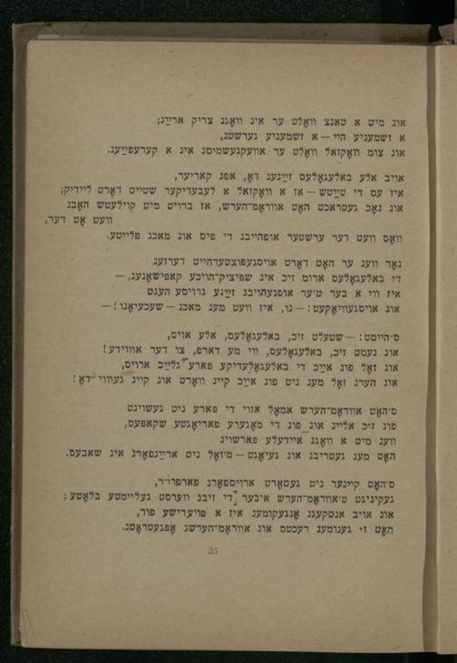 אוג מיט א טאנצ װאָלט ער איג װאָגג צריק ארײַג, א זשמעניע היי-- א זשמעניע גערשטג, אוג צומ װאָקזא? װאָלט ער אוועקגעשמיסג איג א קערעפלעג.