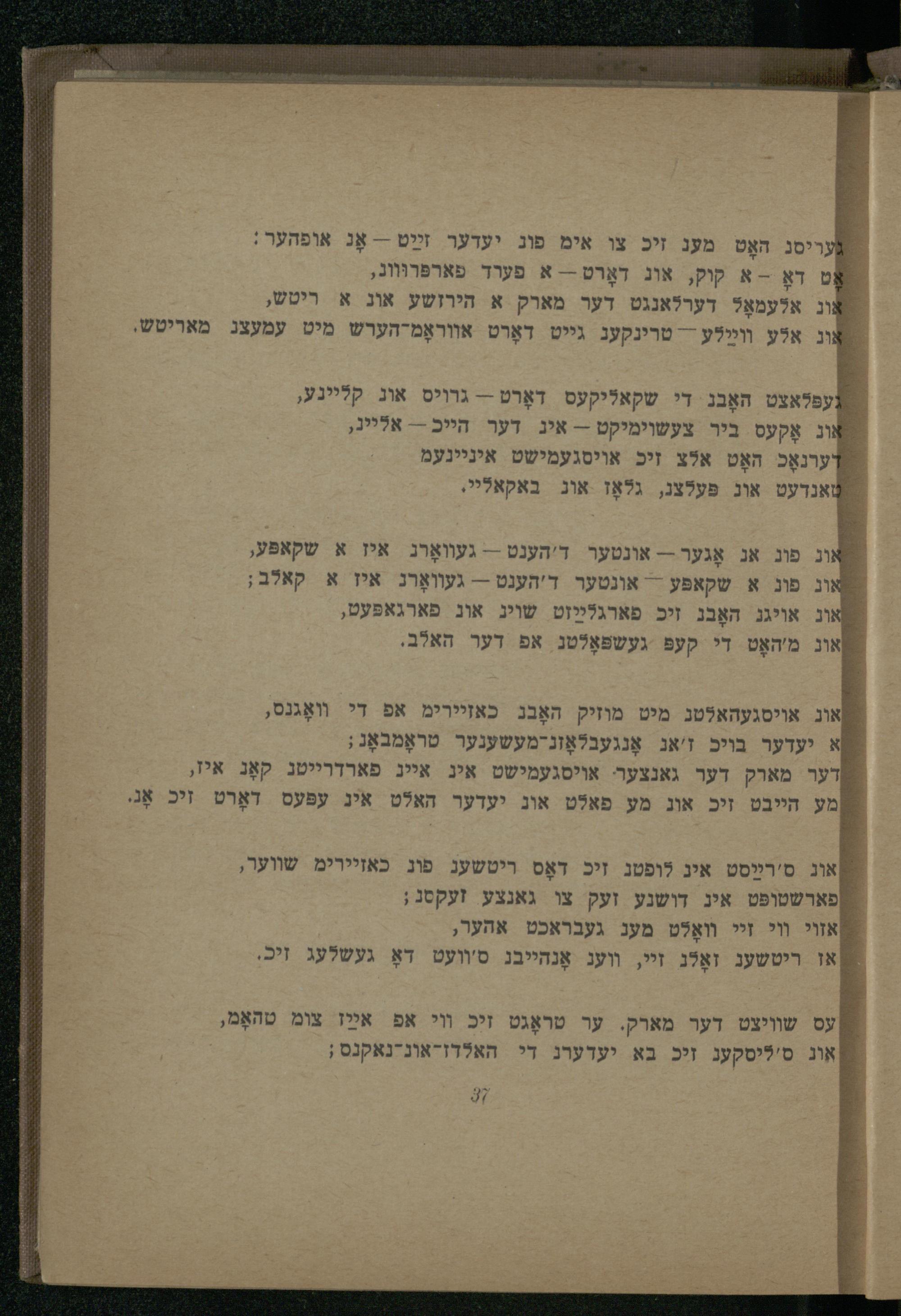 אוג אויסגעהאלטג מיט מוזיק האָבג כאזיירימ אפ די װאָגנס, }א יעדער בויכ ז'אג אָנגעבלאָזנ-מעשענער טראָמבאָג; שדער מארק דער גאנצער. אויסגעמישט אינ אייג פארדרייטג קאָג איז, מע חייבט זיכ אוג מע פאלט אונ יעדער האלט אינ עפּעס דאָרט זיכ אָגי