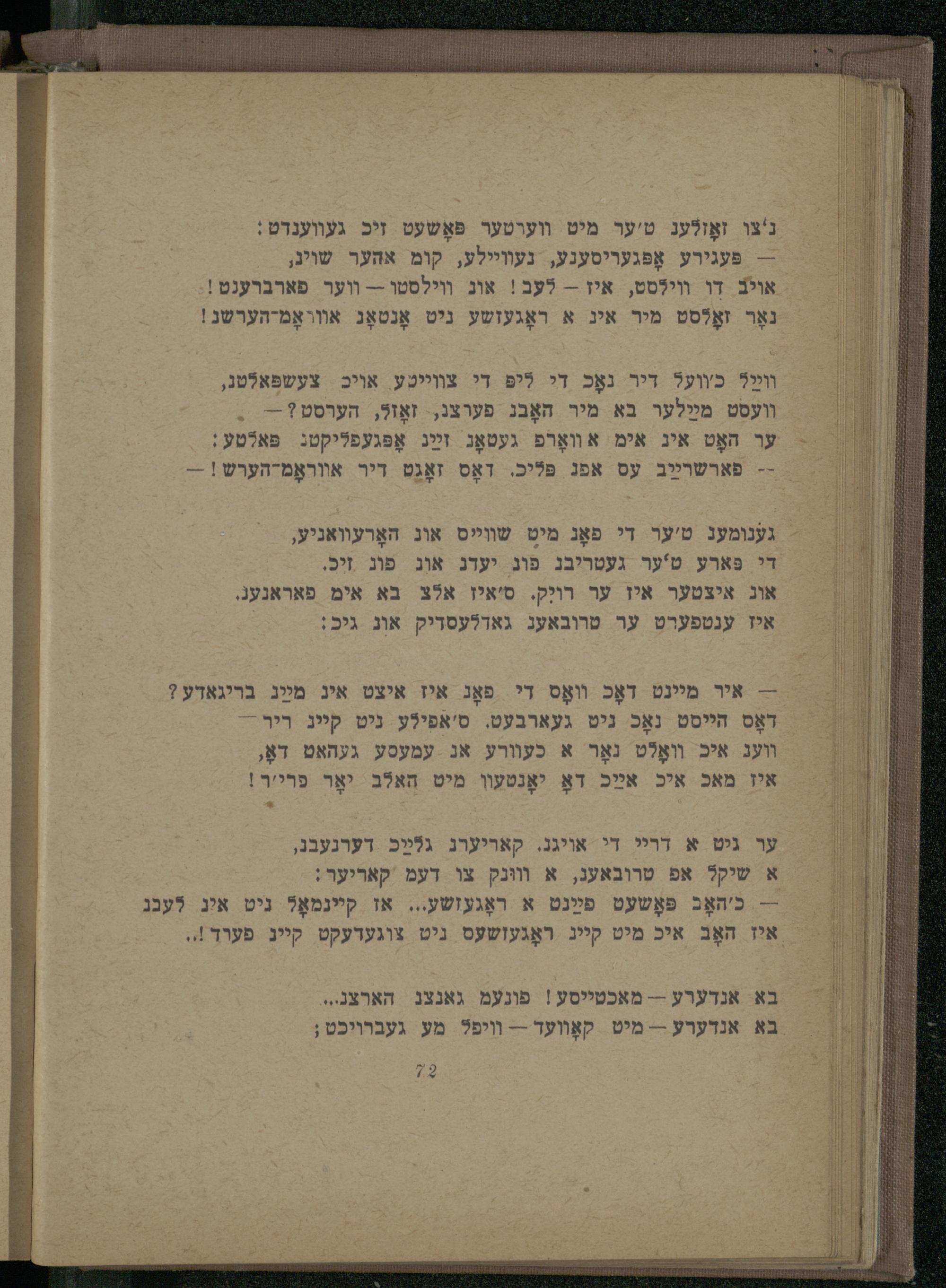 אוג איצטער איז ער רויק. ס'איז אלצ בא אימ פאראנעג. איז ענטפערט ער טרובאענ גאדלעסדיק אוג גיכ;