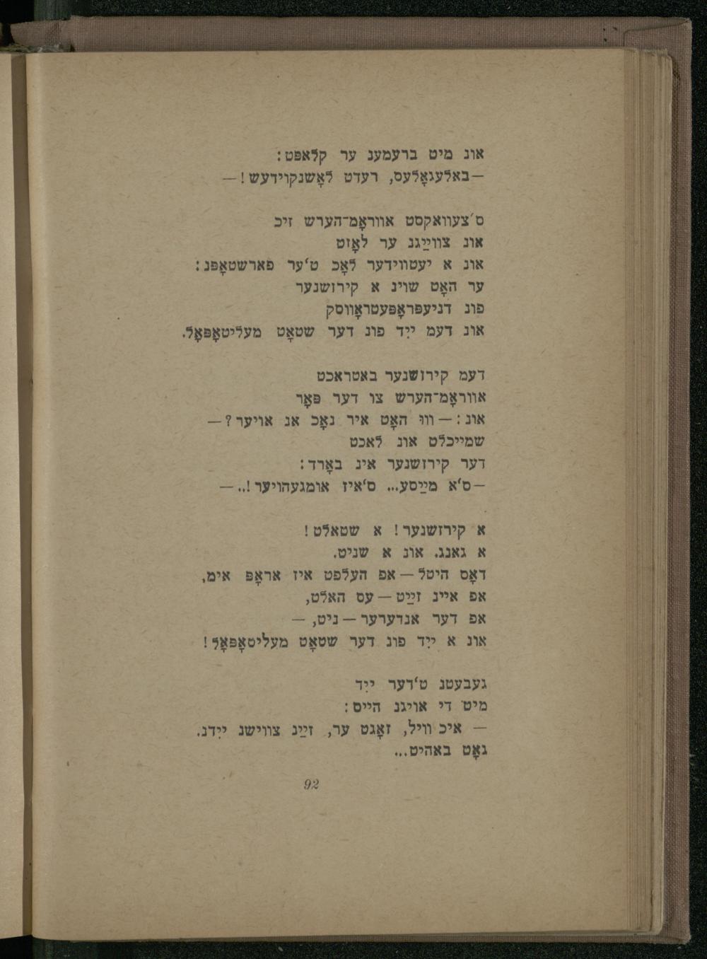 -- איכ װיל, זאָגט ער, זײַג צווישג ייִדג. גאָט באהיט...