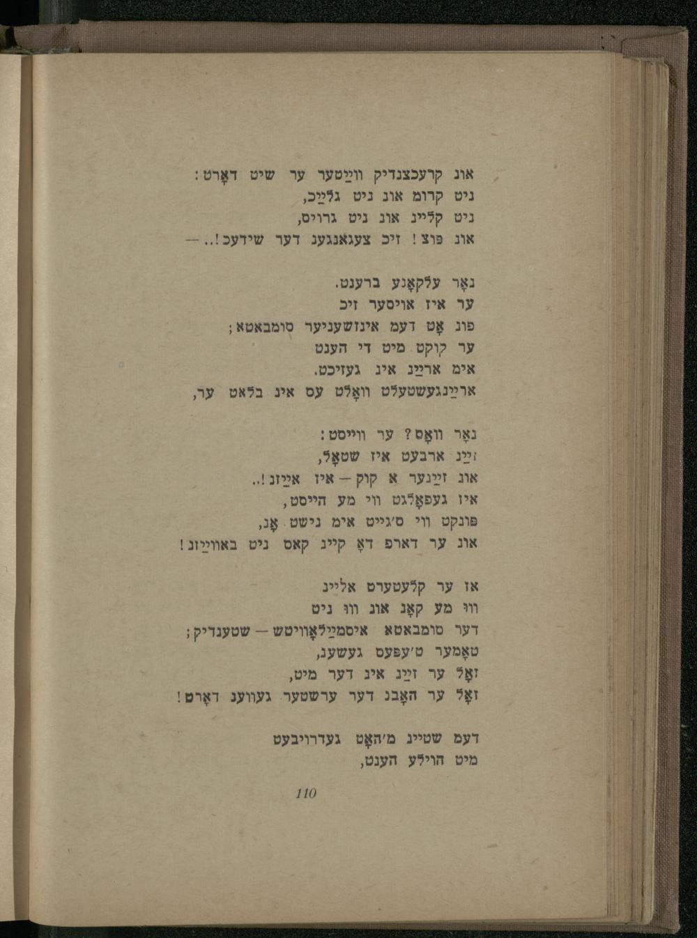 אוג קרעכצנדיק װײַטער ער שיט דאָרט; ניט קרומ אונ ניט גללַכ, ניט קלייג אונ ניט גרויס, אונ פּוצ! זיכ צעגאנגעג דער שידעכ!..-