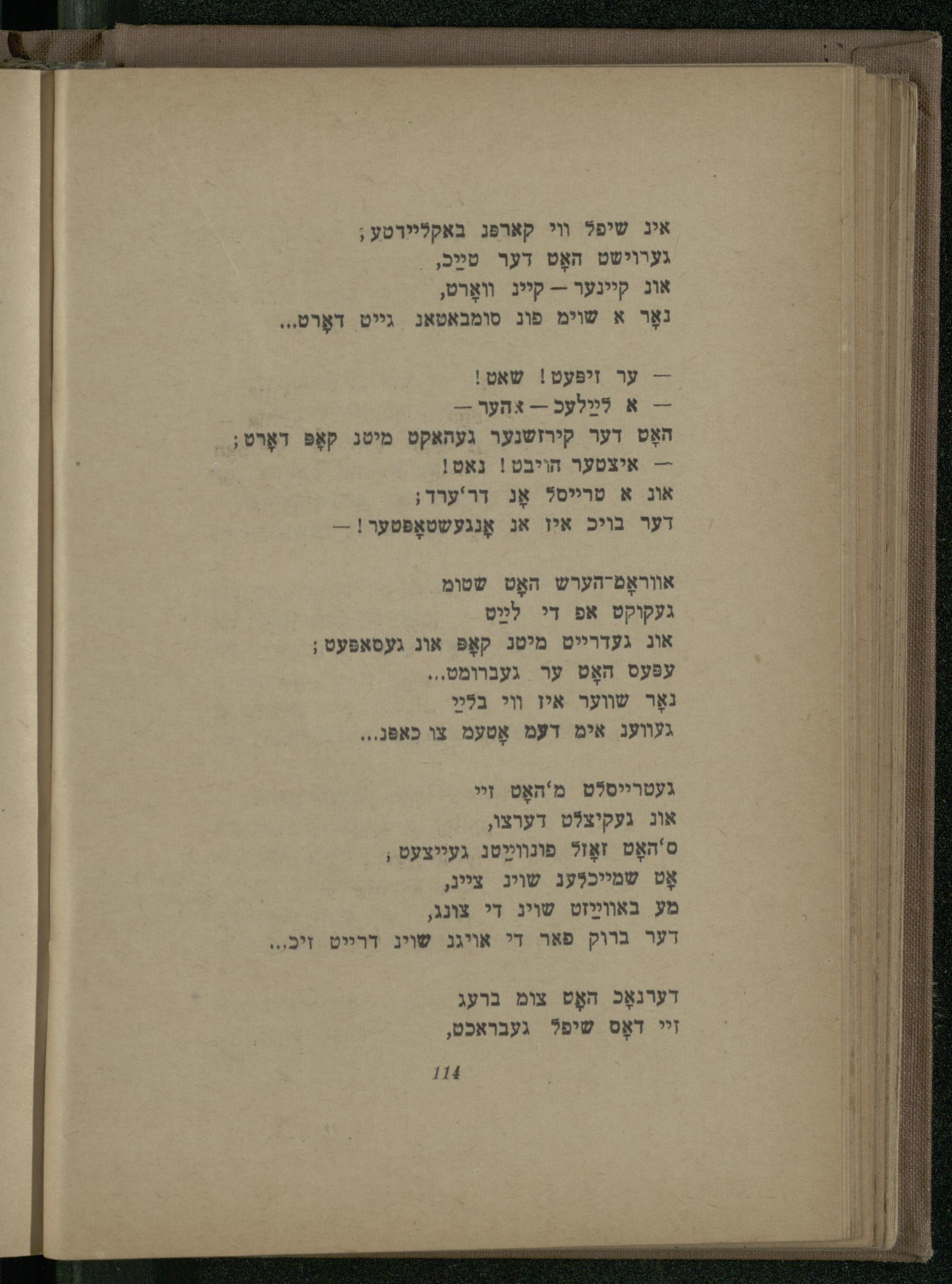 אוג געדרייט מיטג קאָפּ אונ געסאפּעט; עפּעס האָט ער געברומט...