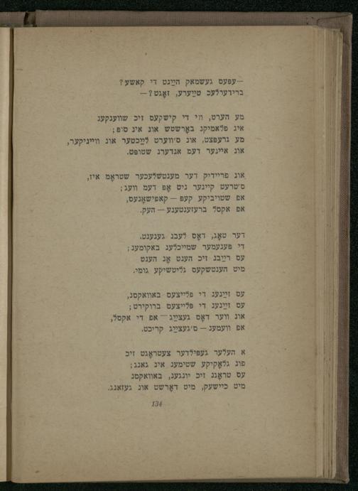 א העלער געפּילדער צעטראָגט זיכ פוג גלאָקיקע שטימענ אינ גאנג; עס טראָגג זיכ יונגעג, באוואקסג מיט כיישעק, מיט דאָרשט אונ געזאנג.