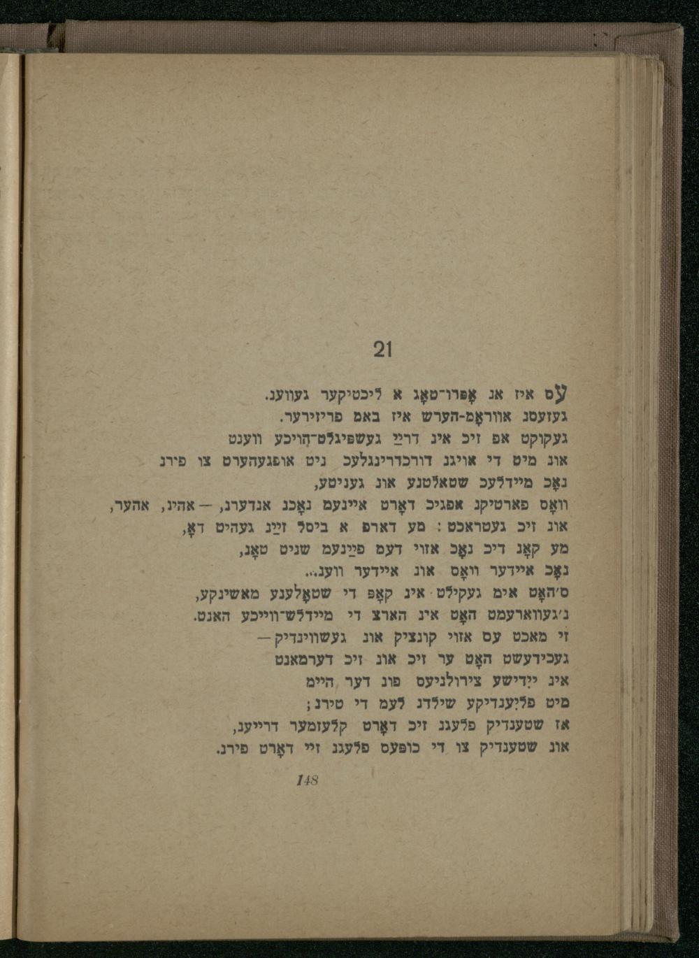 ס'האָט אימ געקילט. איג קאָפּ די שטאָלענע מאשינקע, ניגעווארעמט האָט איג הארצ די מיידלש-ווייכע האנט.