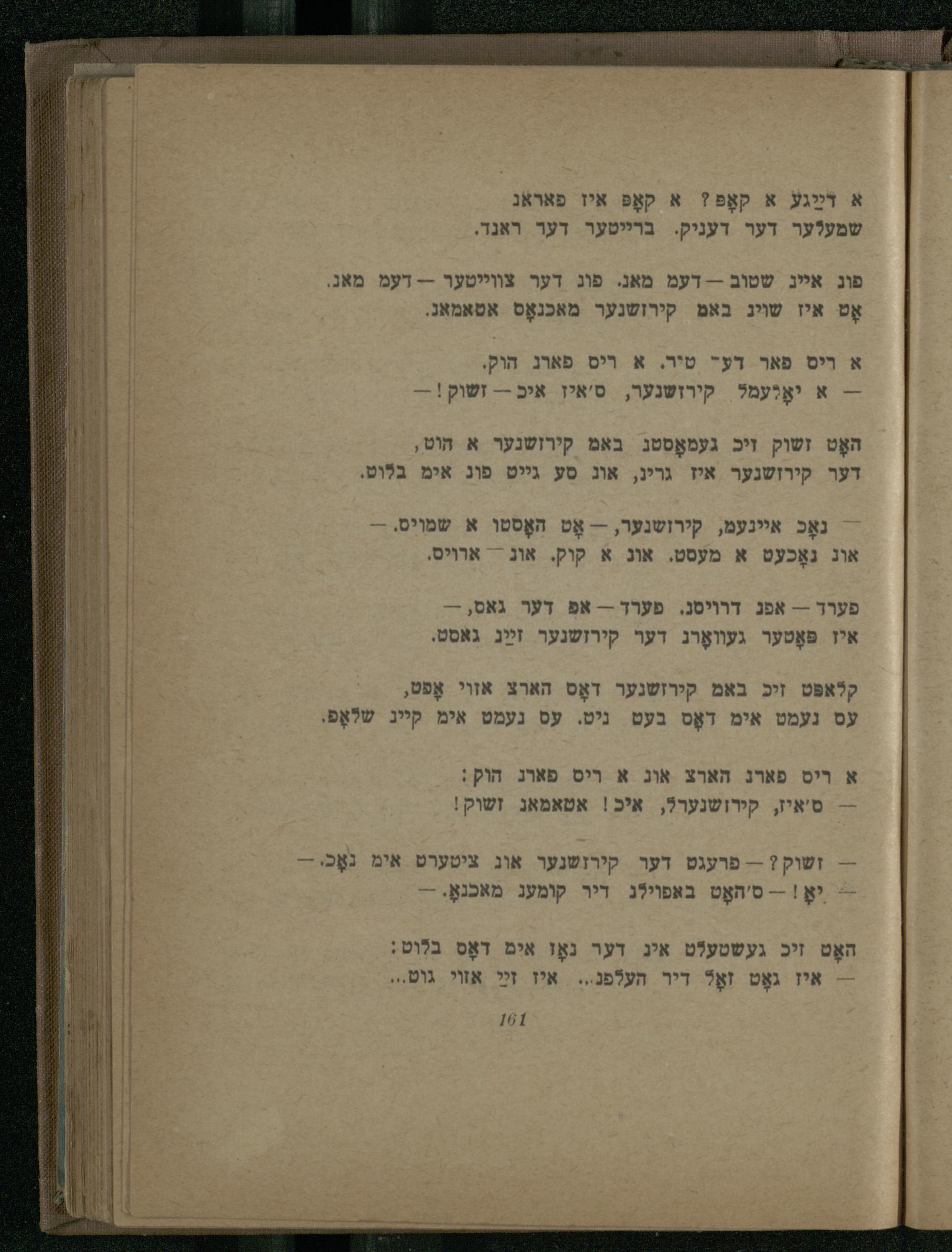 -- זשוק?-- פרעגט דער קירזשנעו אוג ציטערט אימ נאָכי-= יאָ!-- ס'האָט באפוילג דיר קומענ מאכנאָ.-