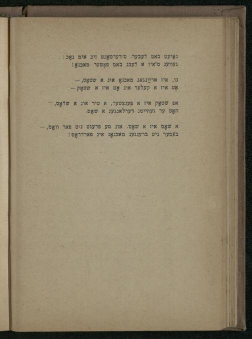 א שאָס איז א שאָס. אונ מע פרעגט ניט פאר. װאָס,-בעסער ניט ברענגעג מאכנאָג אי פארדרױאָס!
