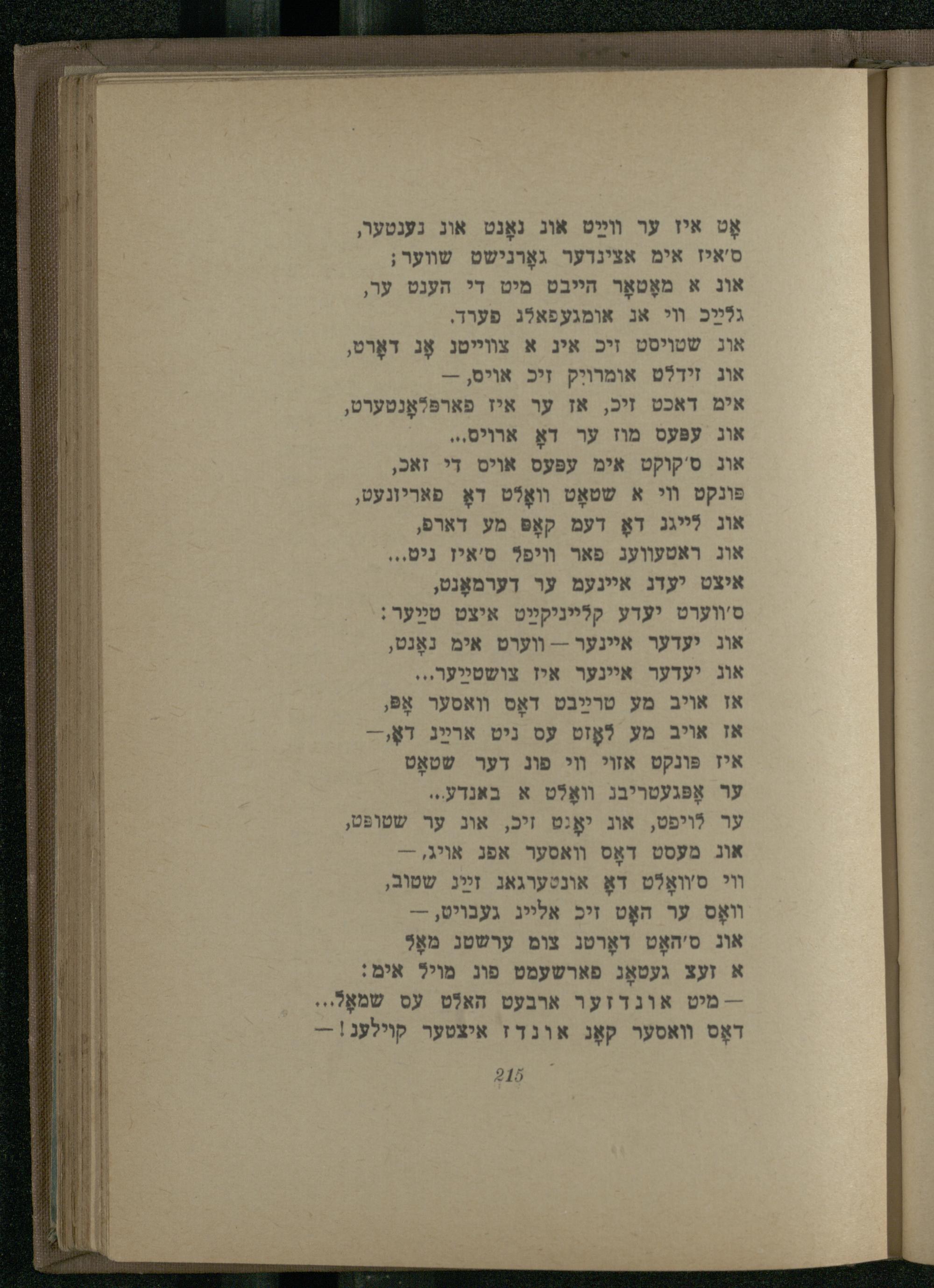 אֶט איז ער װײַט אוג נאָנט אוגנ נענטער, ס'איז אימ אצינדער גאָרנישט שווער; אונ א מאָטאָר הייבט מיט די הענט ער, גלײַכ װי אנ אומגעפאלג פערד.