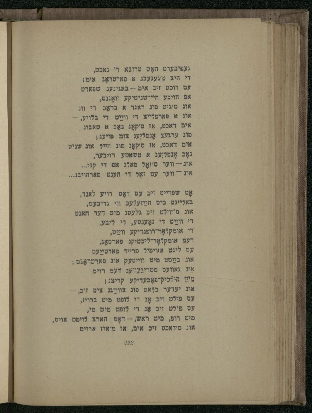 אוג יעדער בלאט פוג צװײַגג ציט זיכ,-עס פילט זיכ אָנ די לופט מיט ברויז, עס פילט זיב אָנ די לופט מיט מי,