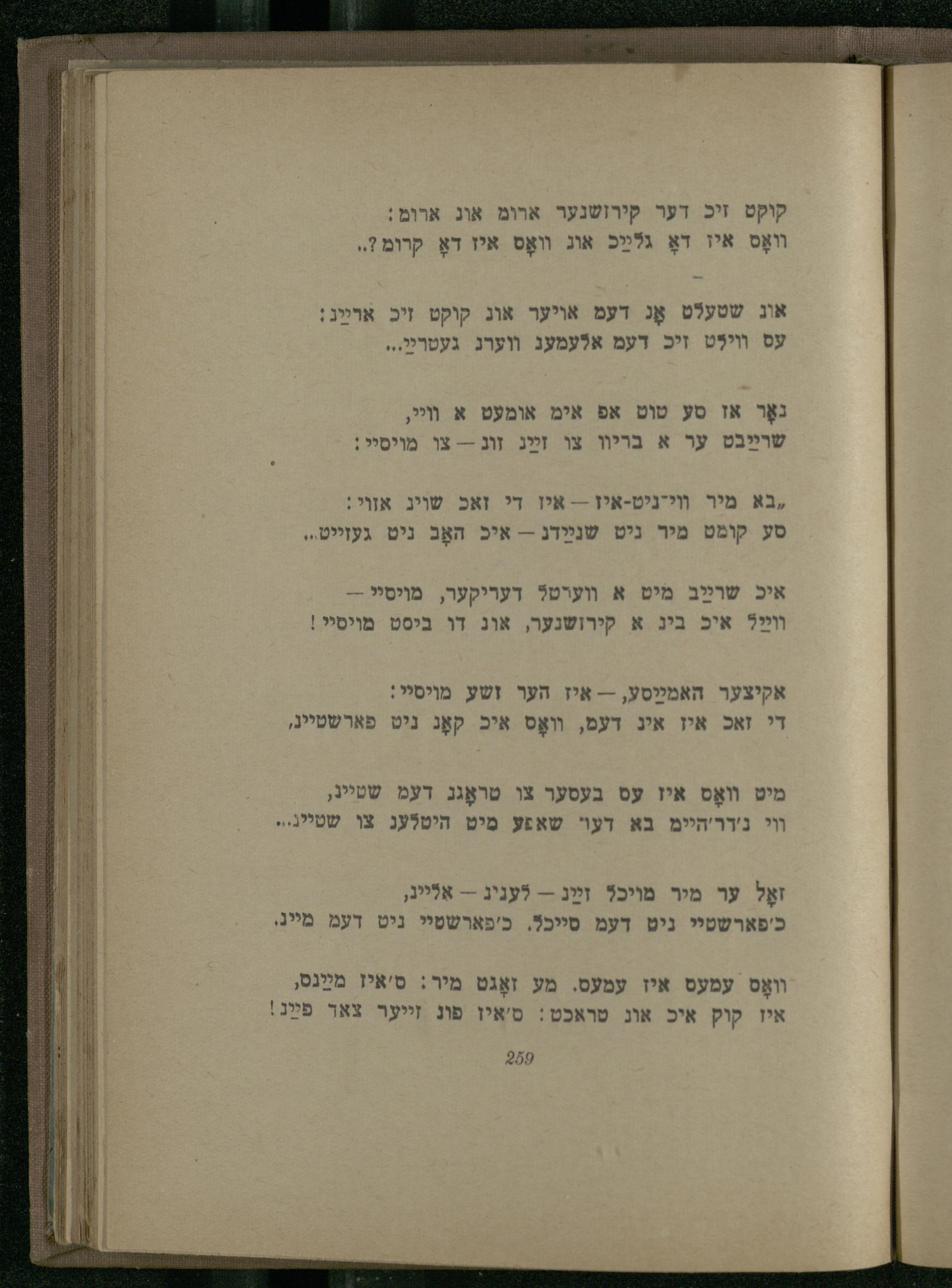 איכ שרײַב מיט א װערט? דעריקער, מויסיי-װײַל איכ ביג א קירושנער, אונ דו ביסט מויסיי!