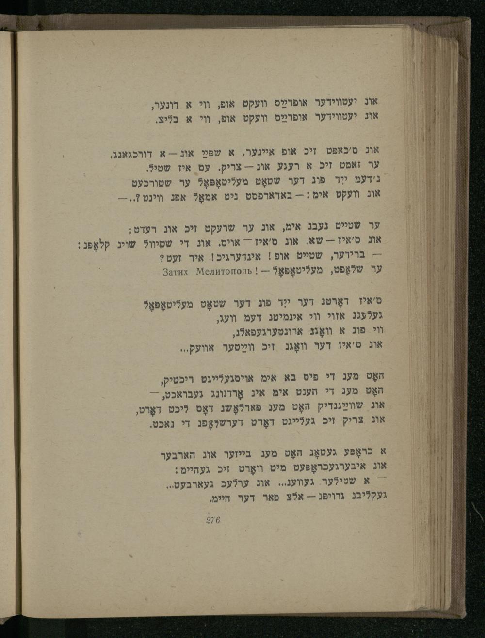 נידעמ ייר פוג דער שטאָט מעליטאָפּאָל ער שטורכעט אוג װעקט אימ:-- באדארפסט ניט אמאָל אפנ וינט?,.-