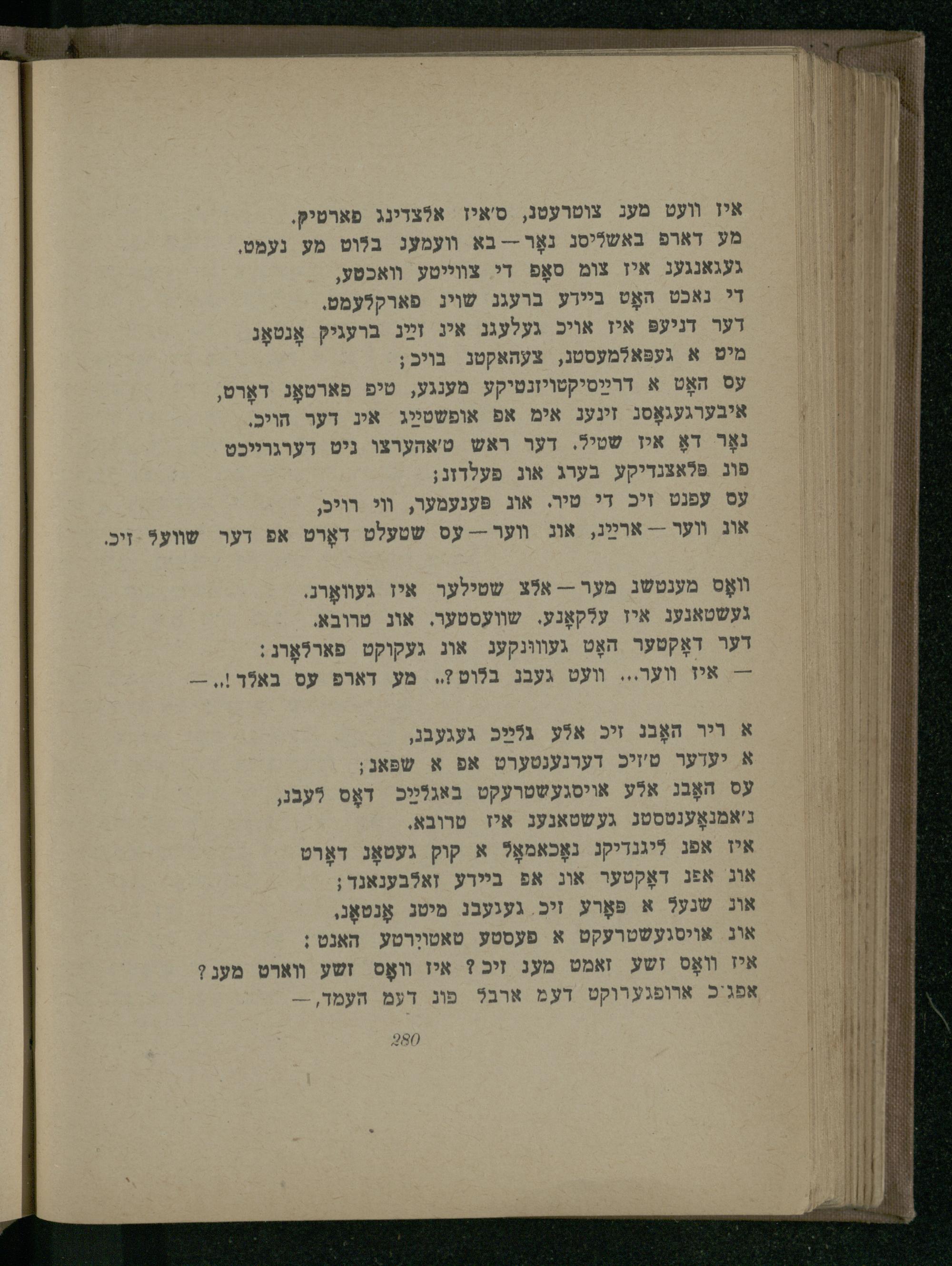 איז װעט מעג צוטרעטנ, ס'איז אלצדינג פארטיק. מע דארפ באשליסג נאָר-- בא וועמעג בלוט מע נעמט, געגאנגענ איז צומ סאָפּ די צווייטע וואכטע,
