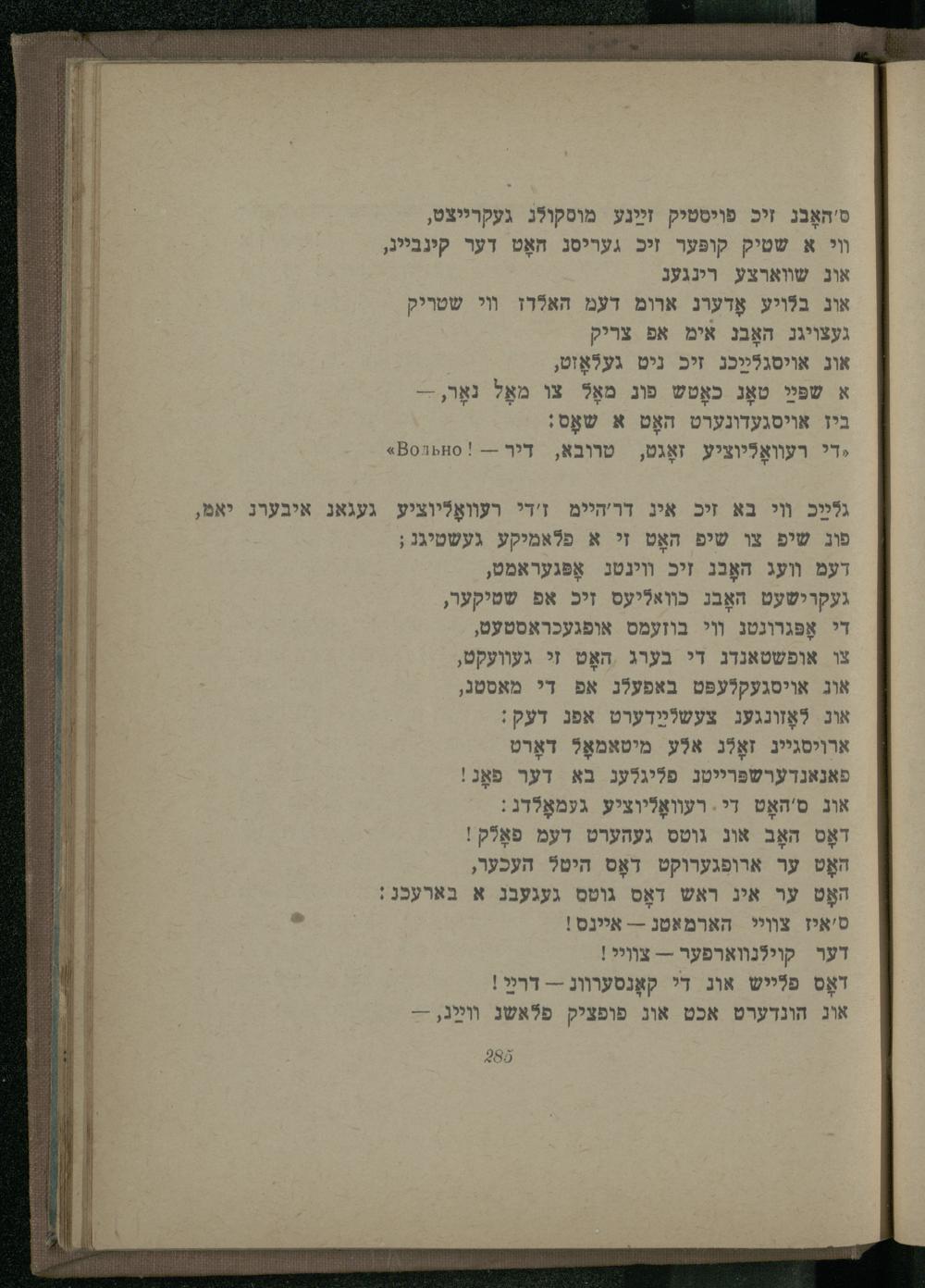 גלײַכ װי בא זיכ אינ דר'היימ ז'די רעװאָליציע געגאג איבערנ יאמ, פוג שיפ צו שיפ האָט זי א פלאמיקע געשטיגג; דעם װעג האָבג זיכ װינטג אָפּגעראמט,