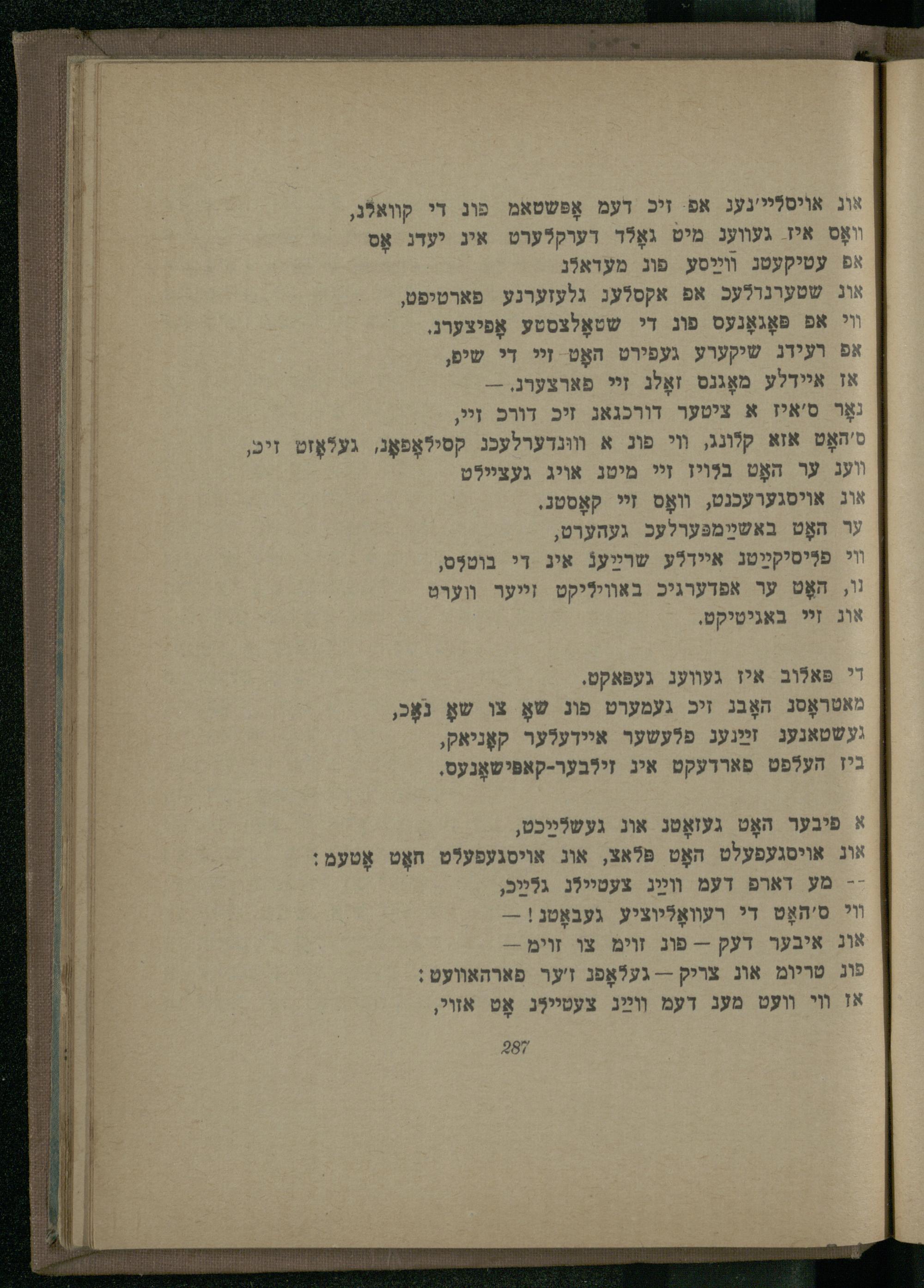 ס'האָט אזא קלונג, װי פוג א װוּנדערלעכג קסילאָפאָג, געלאָזט װעג ער האָט בלויז זי מיטג אויג געציילט